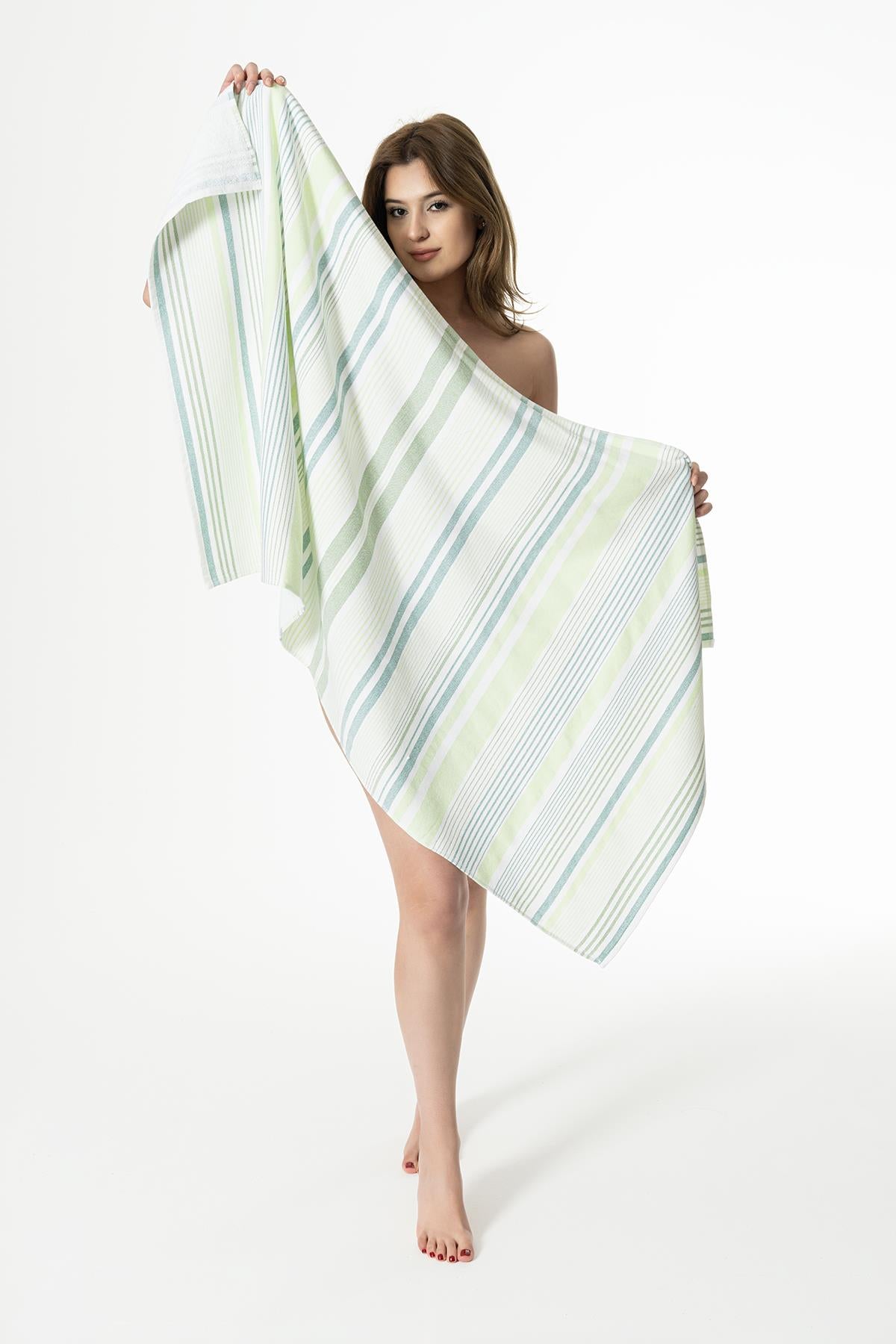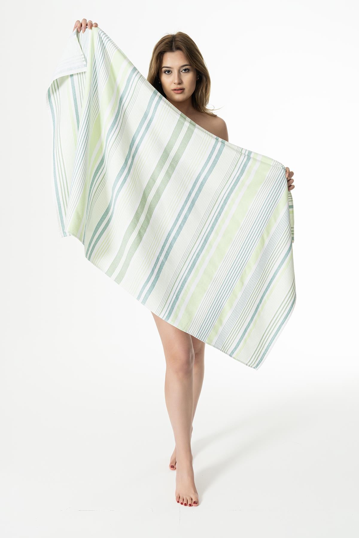 DualWeave Çizgili Peştemal Havlu – %100 Pamuk 70x140 cm Yeşil