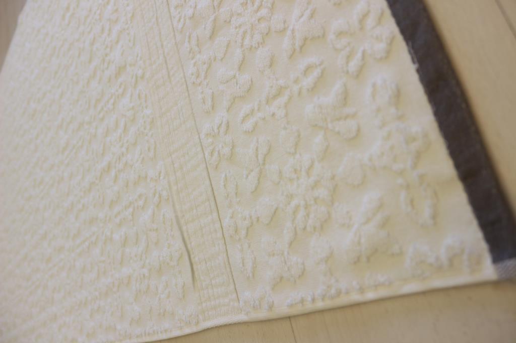 - Krem Renkli, Çiçek Desenli Jakarlı Bordürlü şık tasarımlı bir havludur.