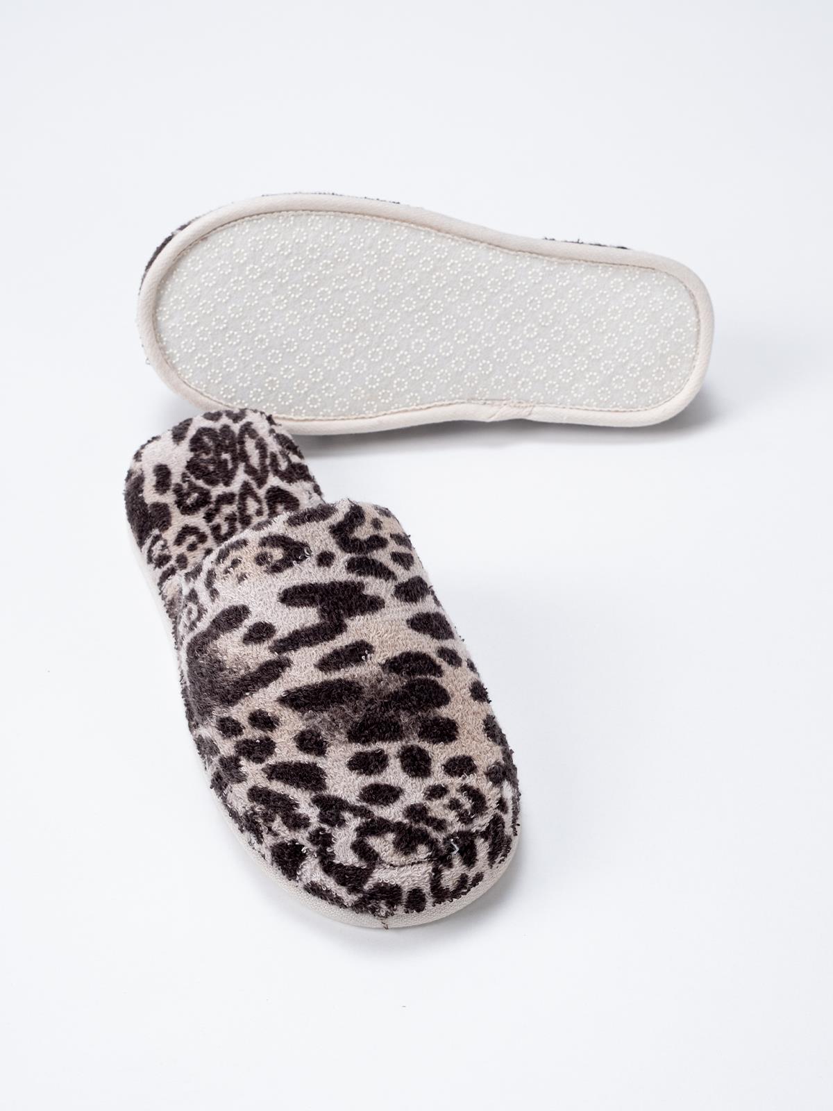 - Ender Home Leopar Baskılı Bukle Terlik Havlu Banyo Ev Otel Lohusa Terliği Kaymaz Kalın Taban Kapalı Burun Günlük Terlik