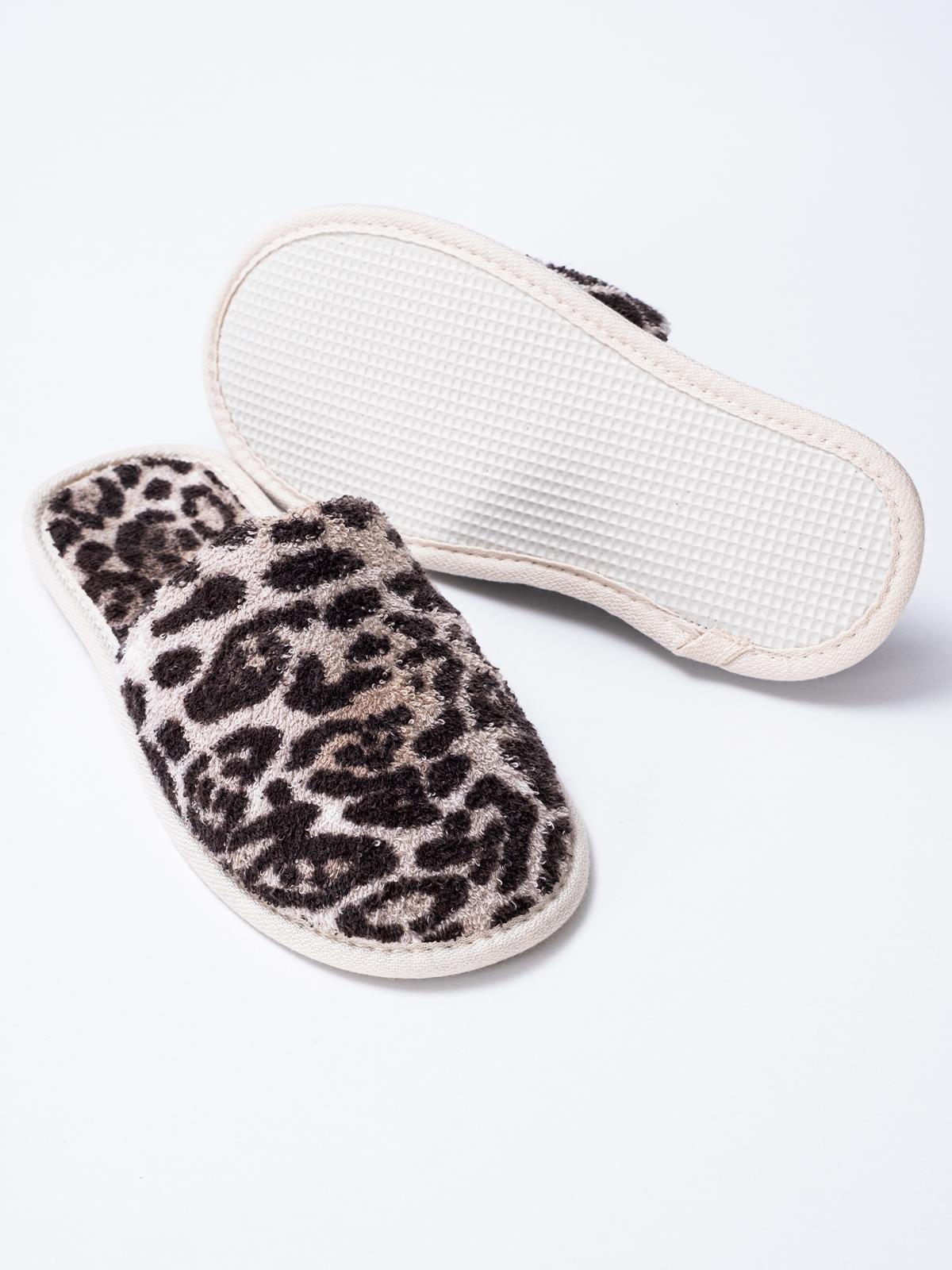 - Ender Home Leopar Baskılı BukleTerlik Havlu Banyo Ev Otel Terliği Kaymaz İnce Taban Kapalı Burun Terlik