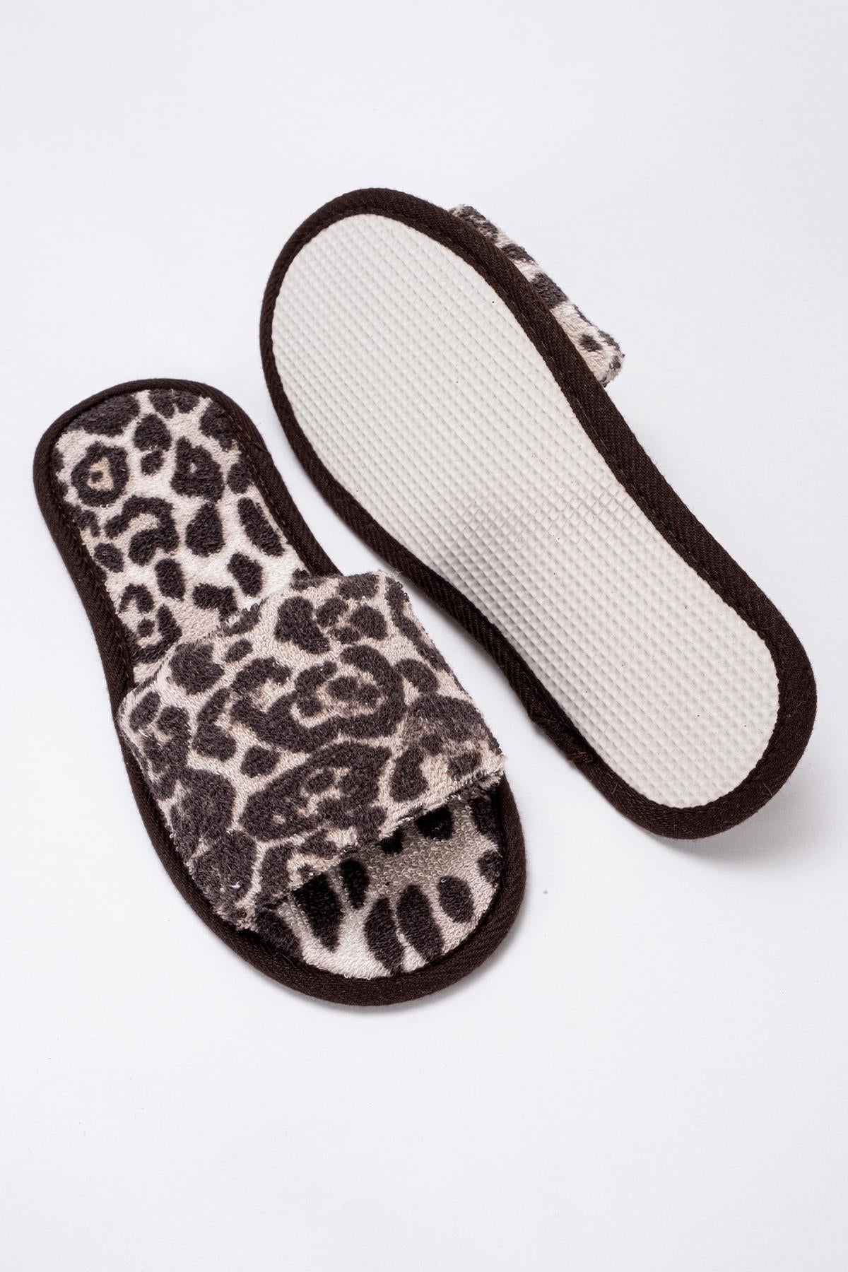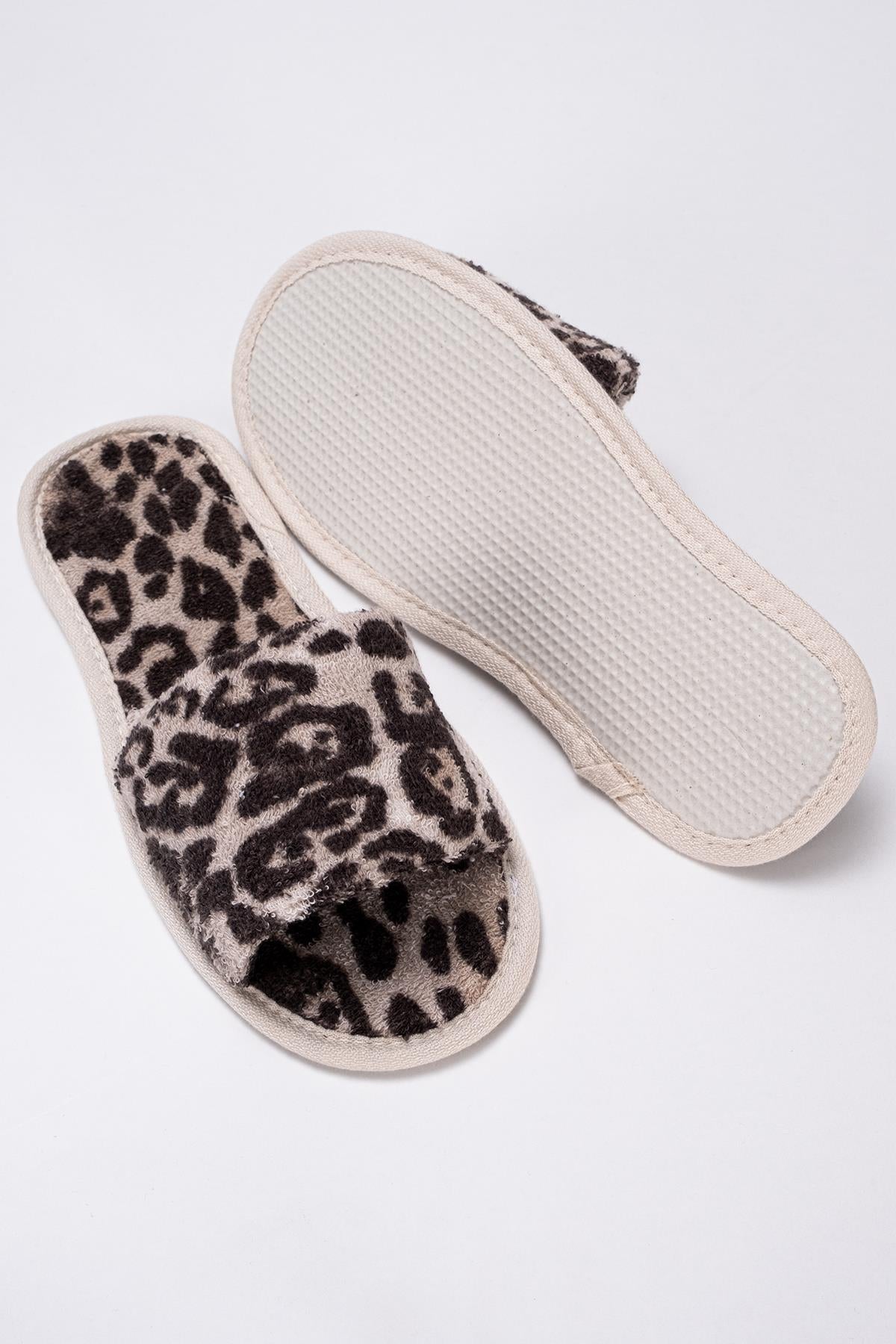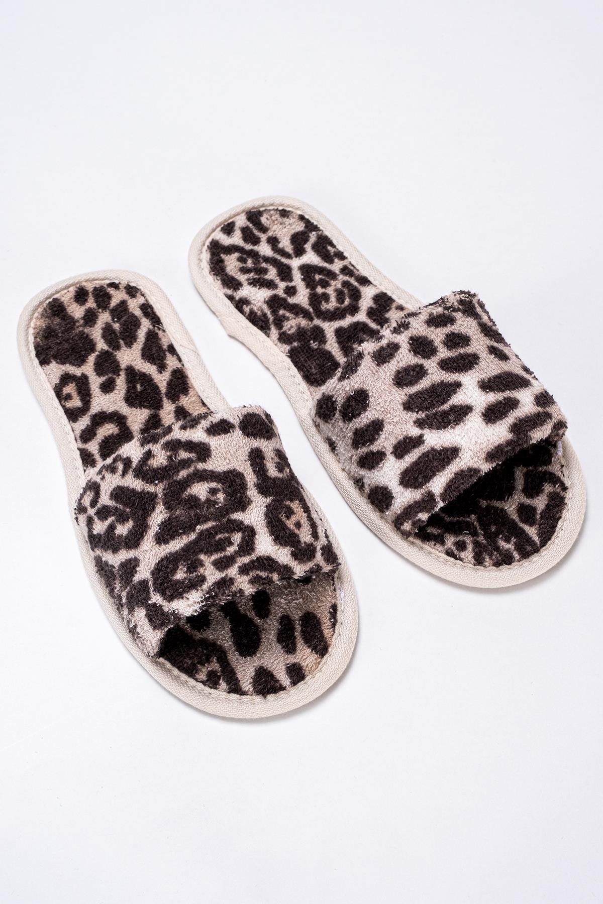 - Ender Home Leopar Baskılı Terlik Havlu Banyo Ev Otel Terliği Kaymaz İnce Taban Açık Burun Ev Terliği