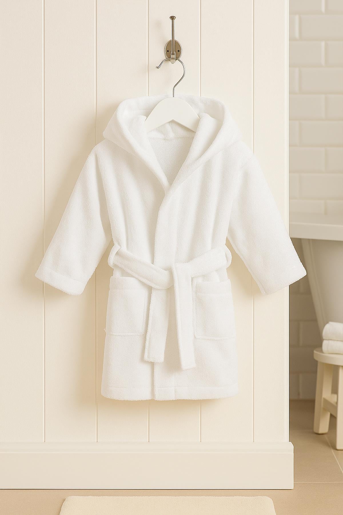 CottonVerse Bebek & Çocuk Kapşonlu Bornoz – %100 Pamuk, Unisex Beyaz