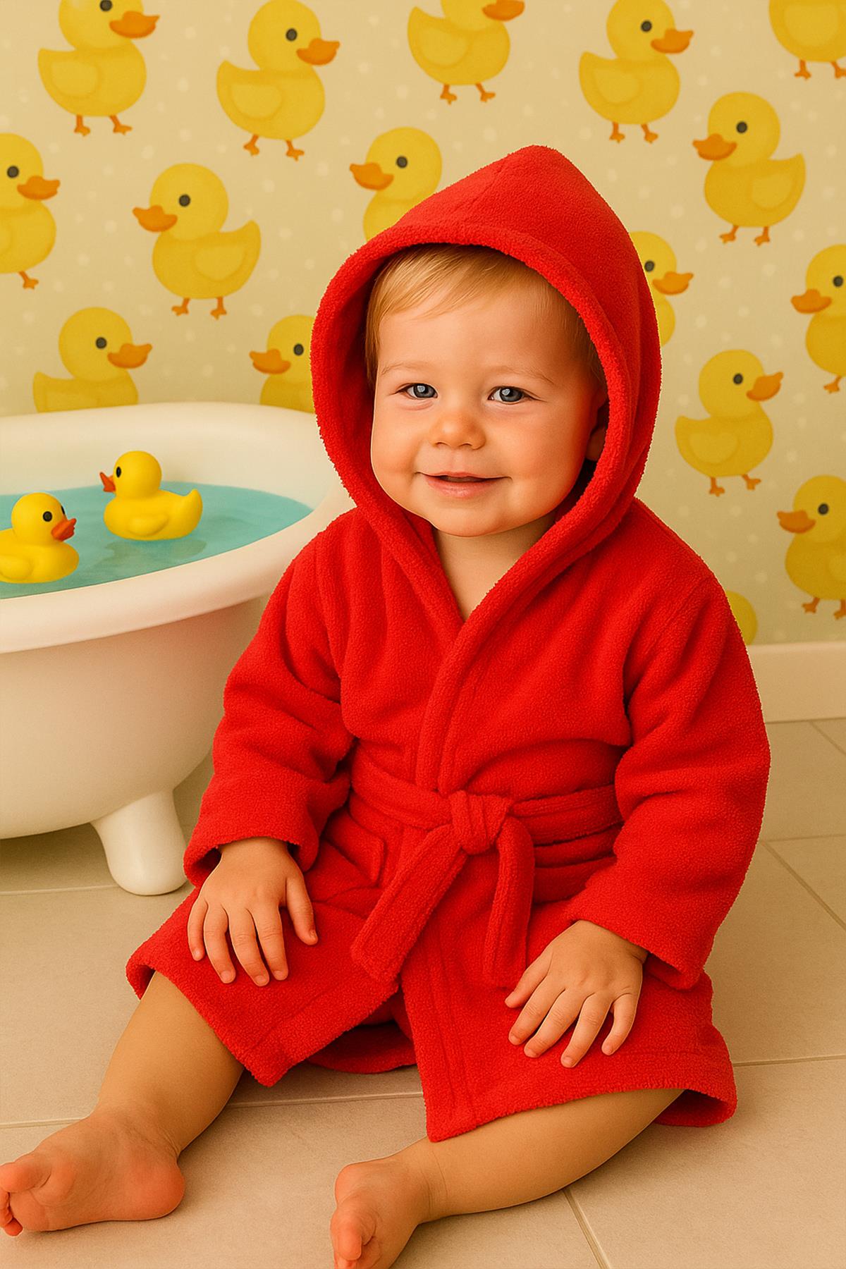 CottonVerse Bebek & Çocuk Kapşonlu Bornoz – %100 Pamuk, Unisex Kırmızı