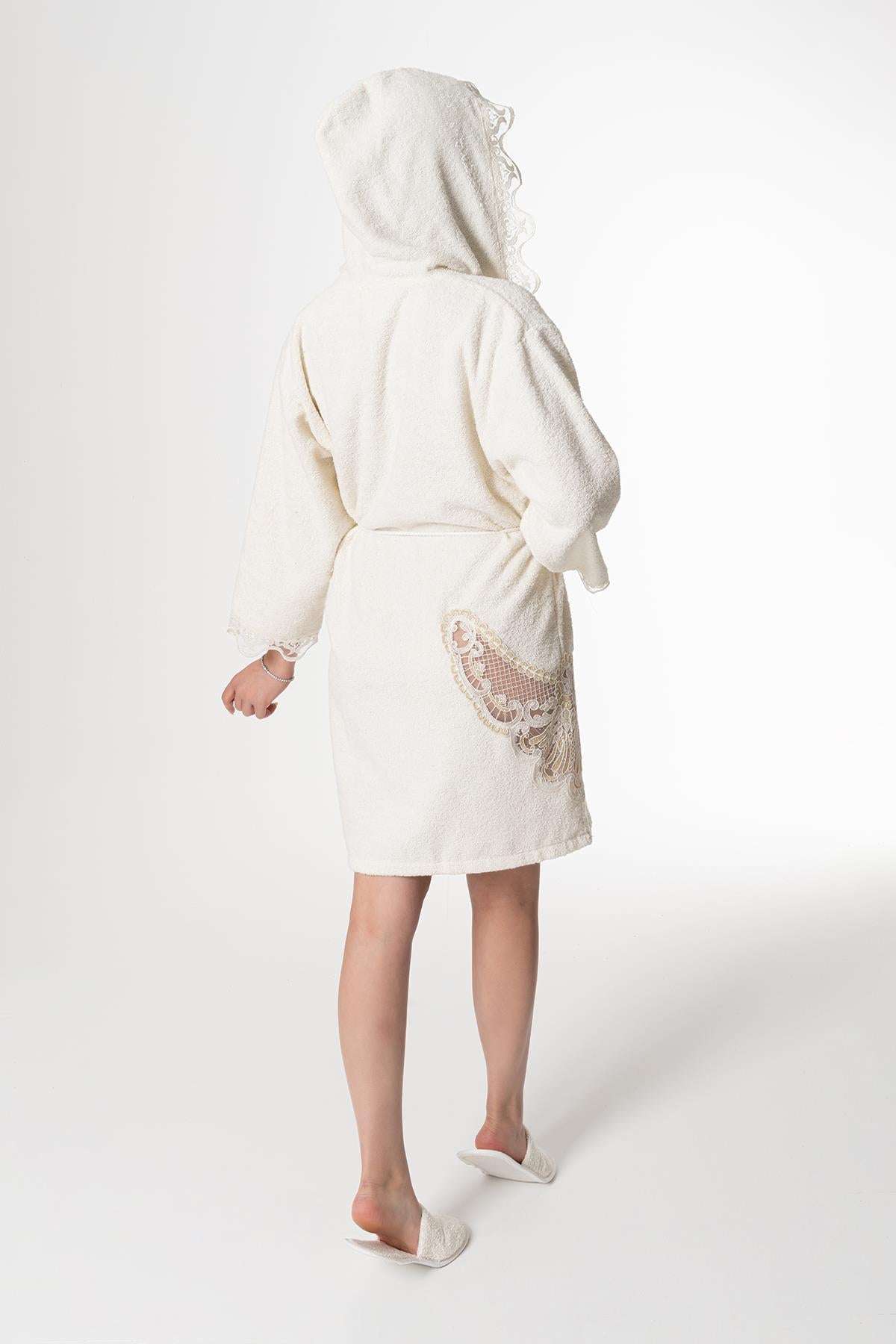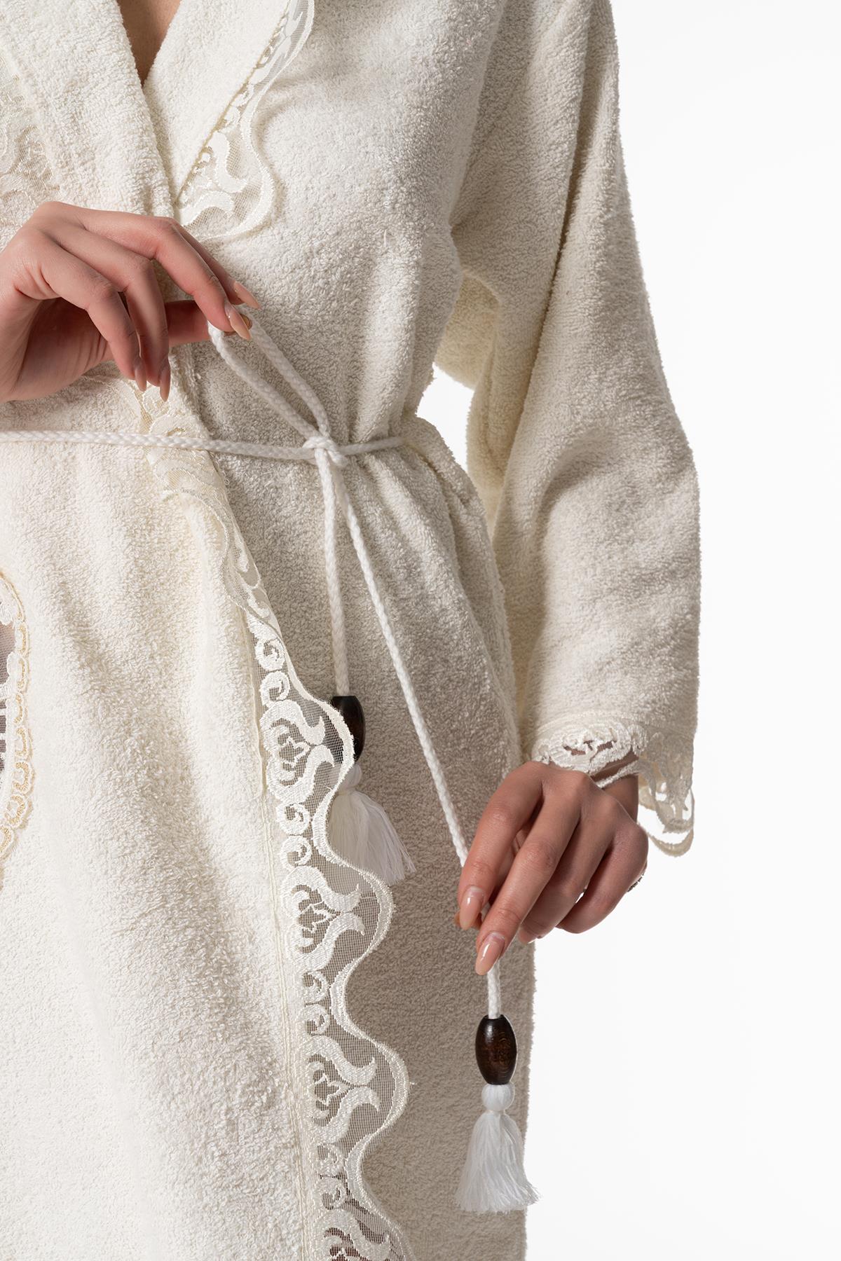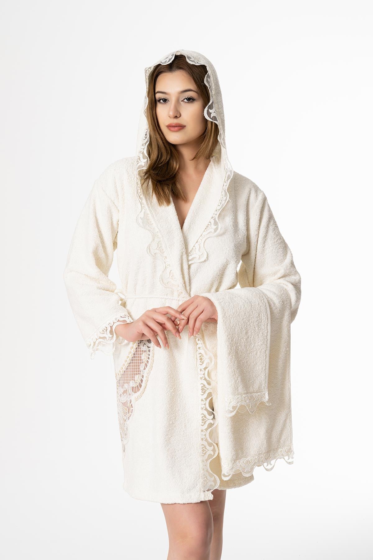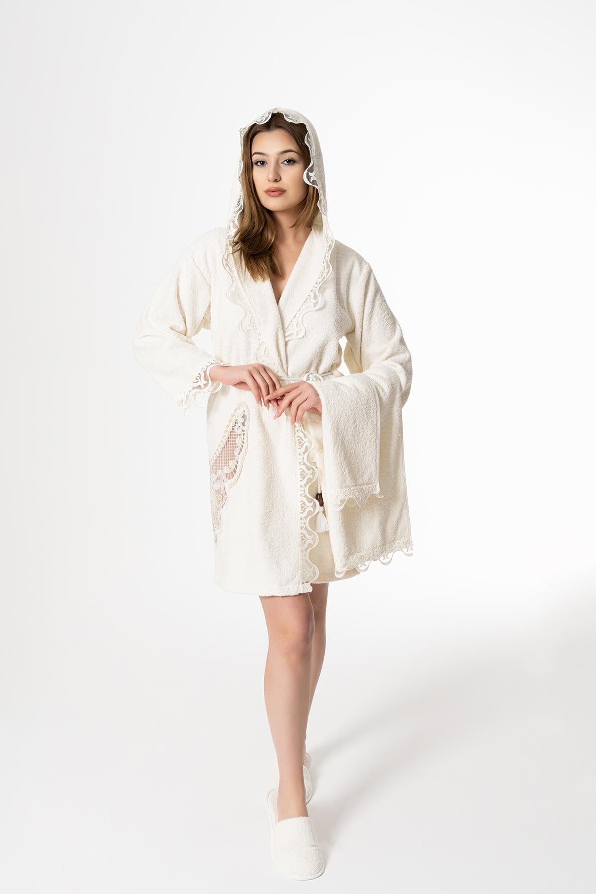 - Ender Home Flora Gelin Bornoz Seti 5 Parça Dantelli Çeyizlik Bayan Bornoz Seti