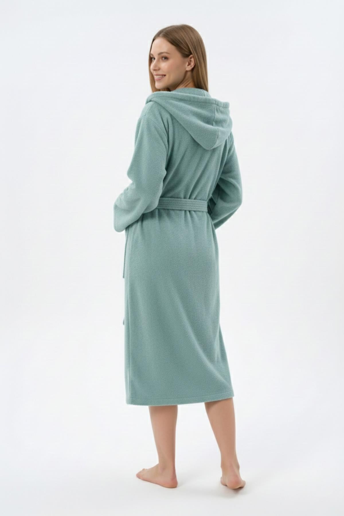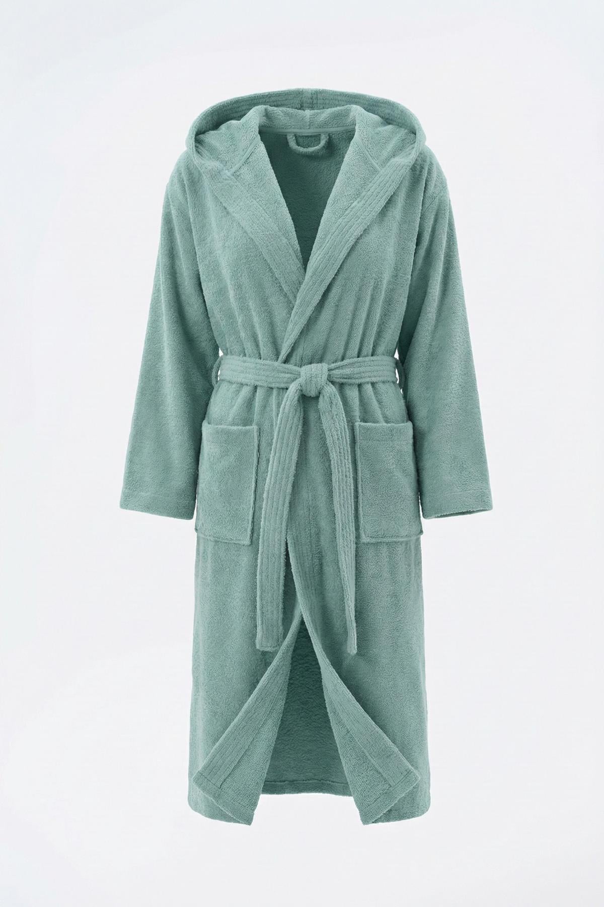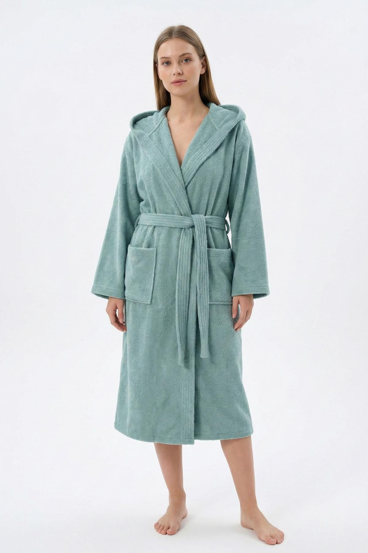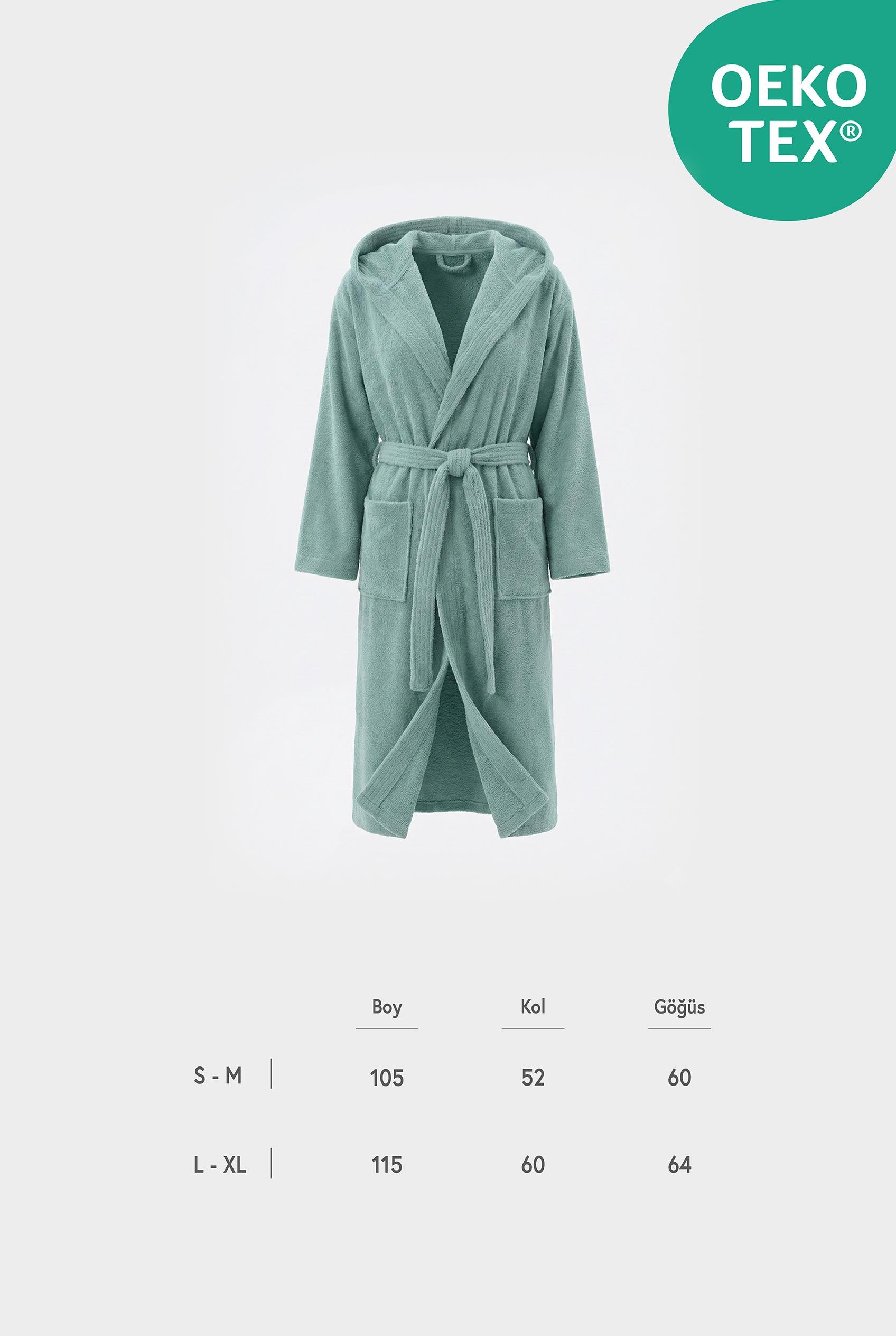 CottonVerse Kapüşonlu Bornoz – %100 Pamuk , Unisex Su Yeşili