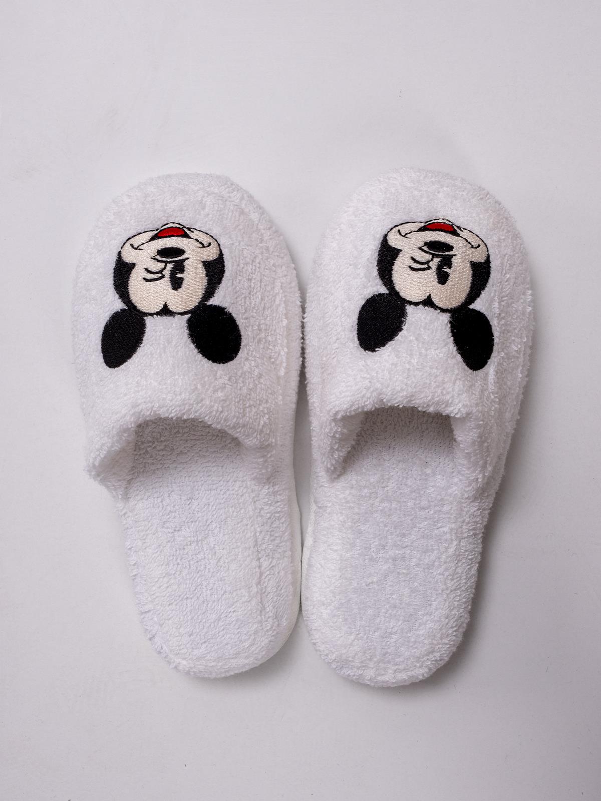 Ratty Sevimli Pofuduk Terlik – %100 Pamuk Kaymaz Taban Beyaz