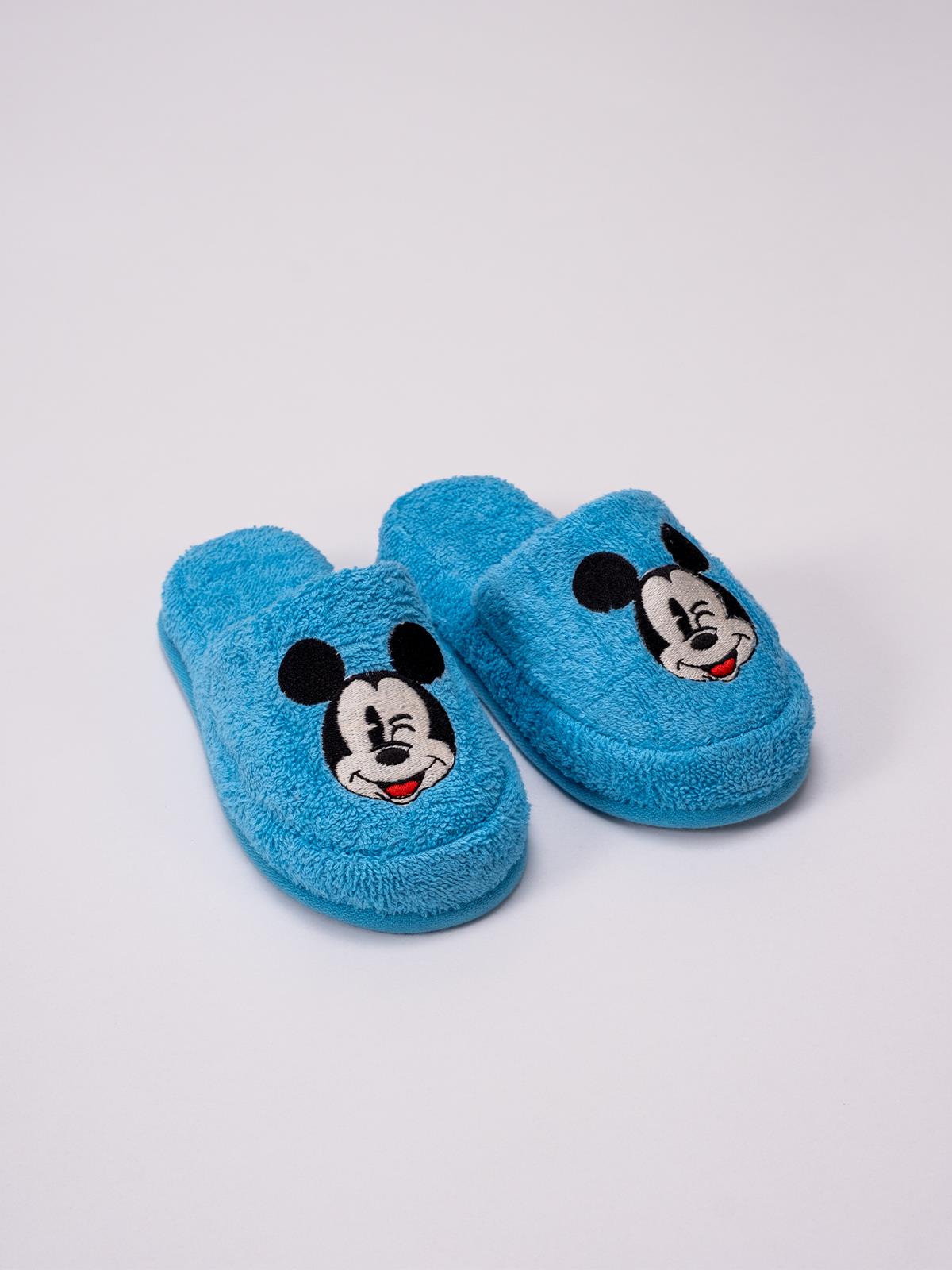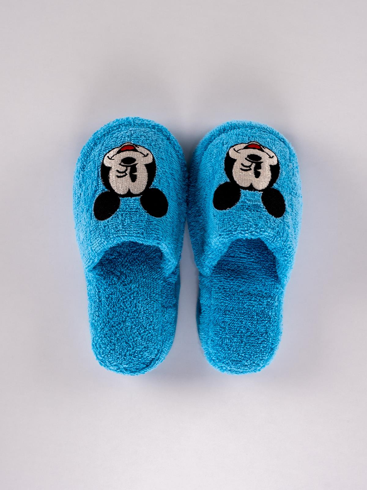 Ratty Sevimli Pofuduk Terlik – %100 Pamuk Kaymaz Taban Mavi