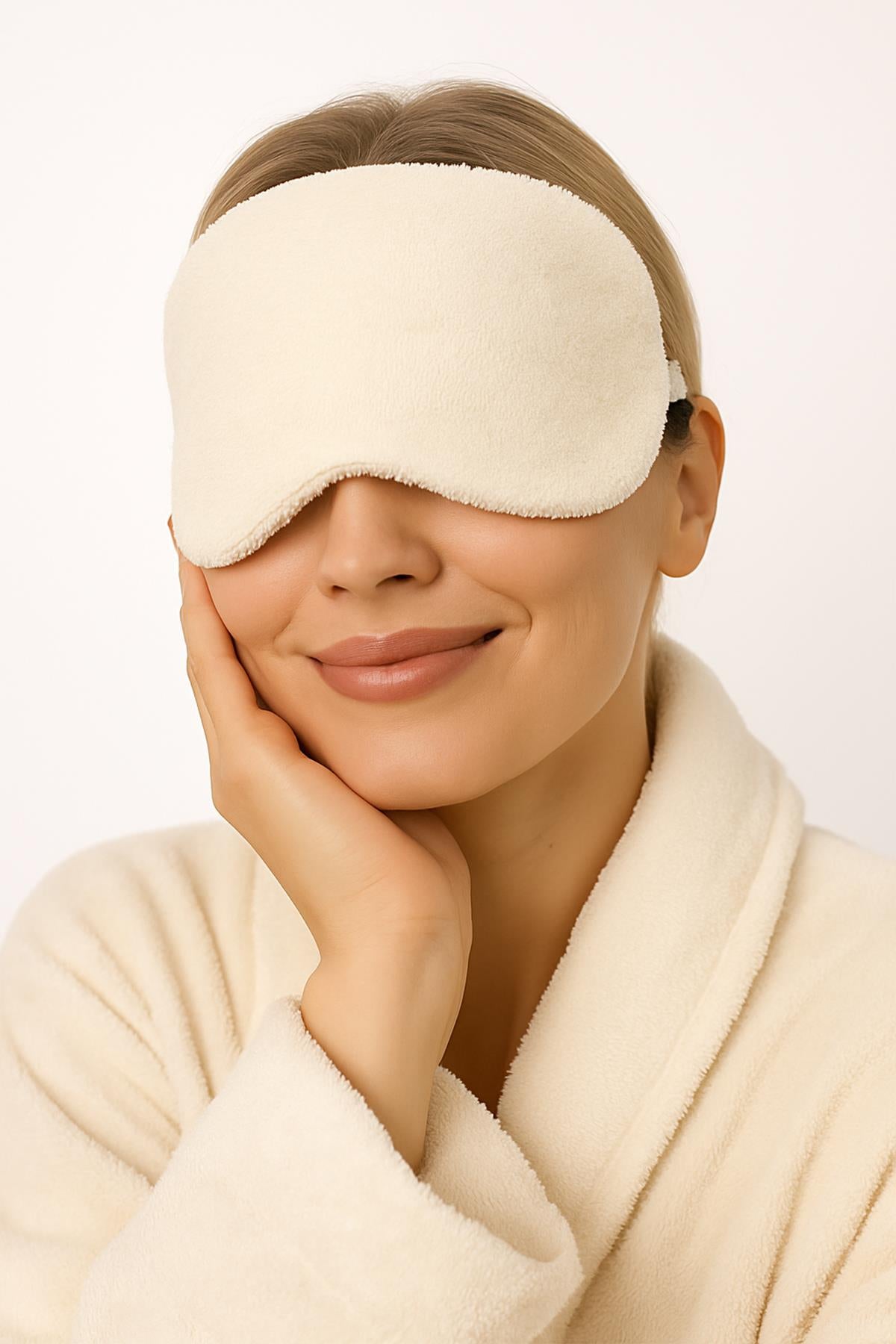 DreamSoft 2'li Kadife Dokulu Göz Bandı – Lüks Yumuşaklık & %100 Pamuk Krem