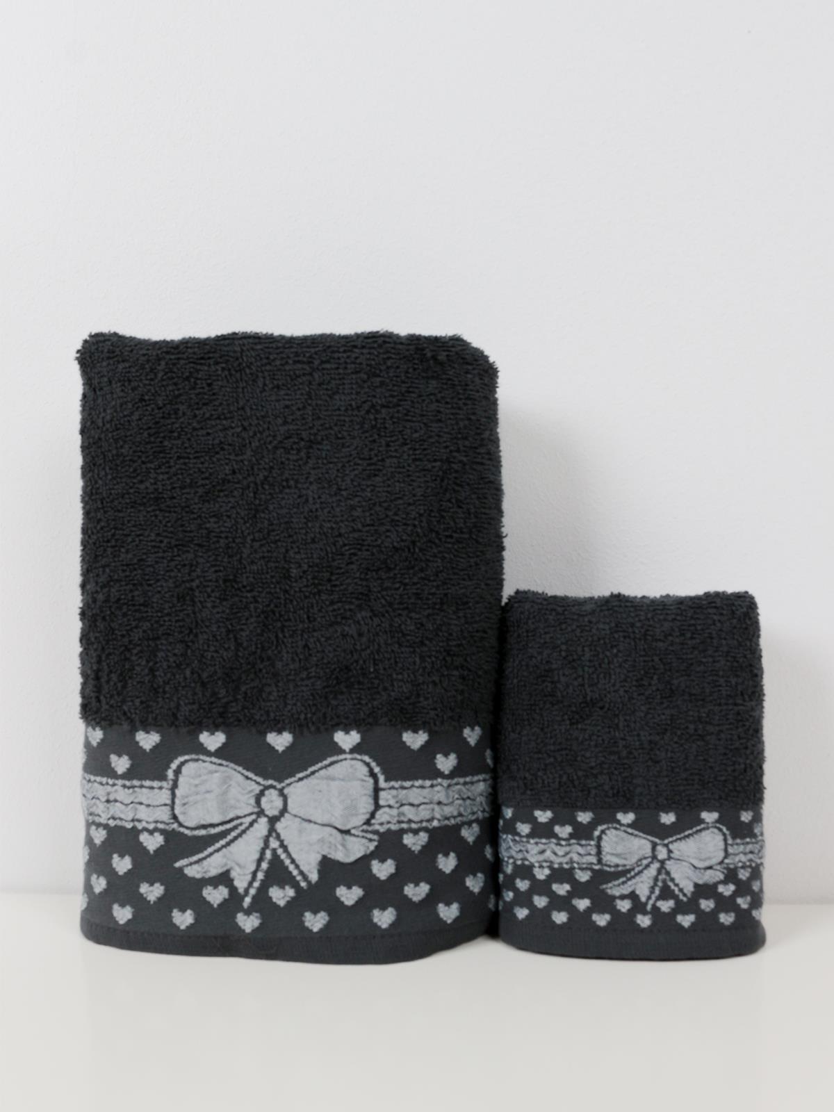 Gift El & Yüz Havlusu – 2’li, %100 Pamuk 30x50 cm ve 50x90 Cm Antrasit