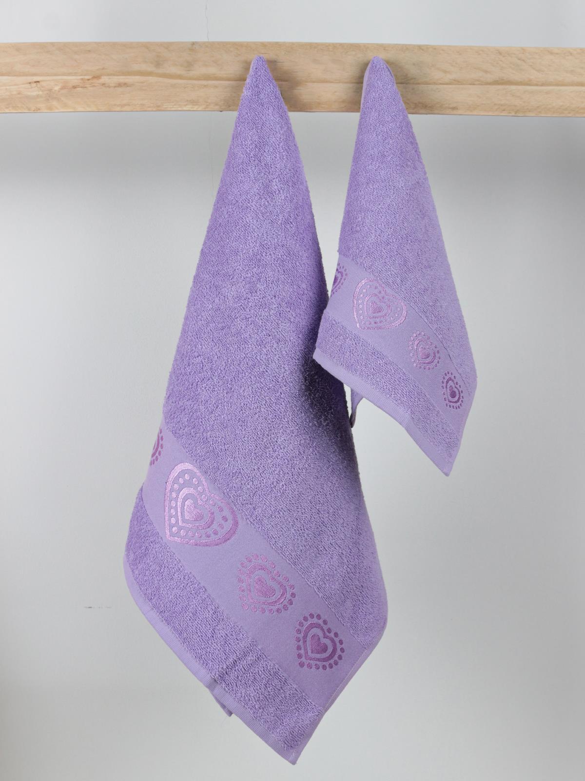 Love El & Yüz Havlusu – 2’li, %100 Pamuk 30x50 Cm ve 50x90 Cm Lila
