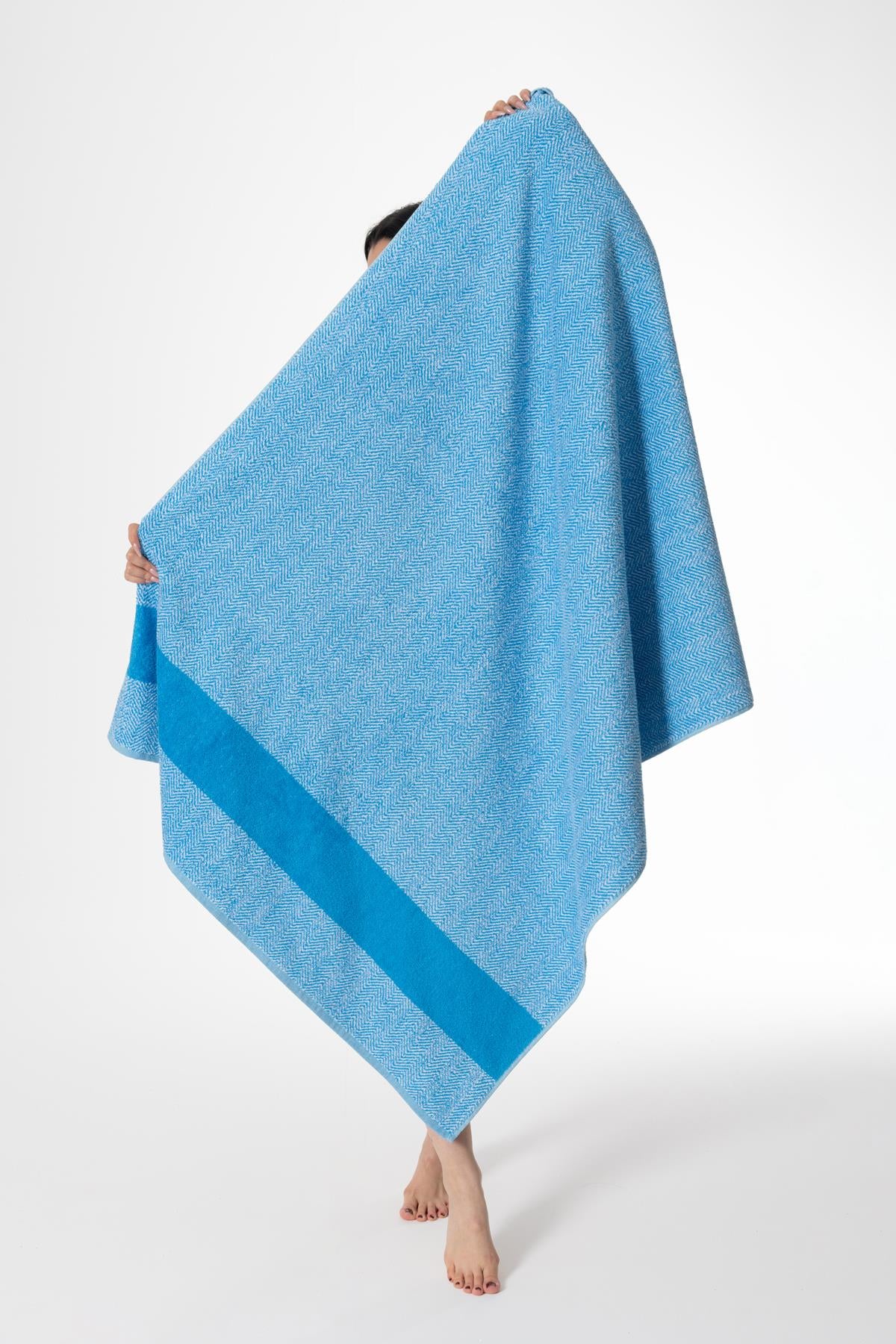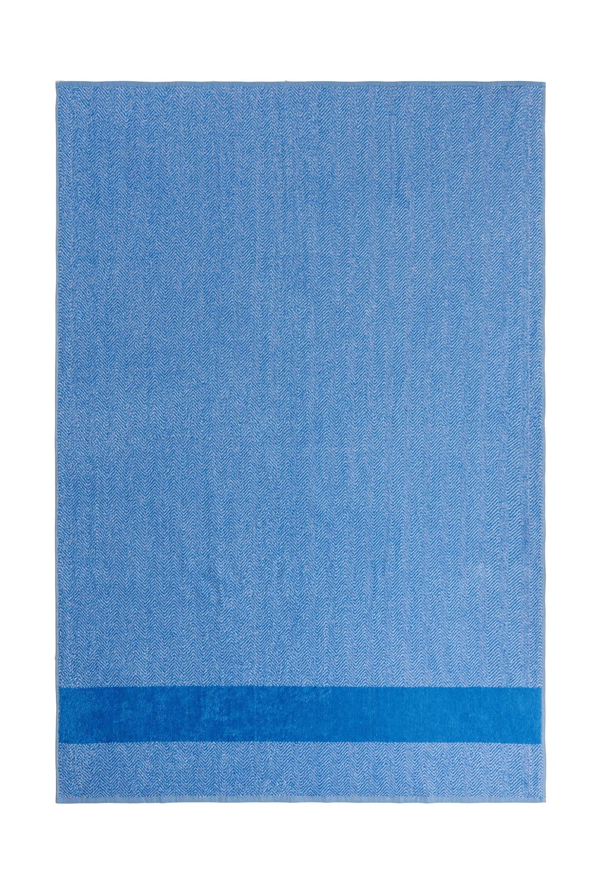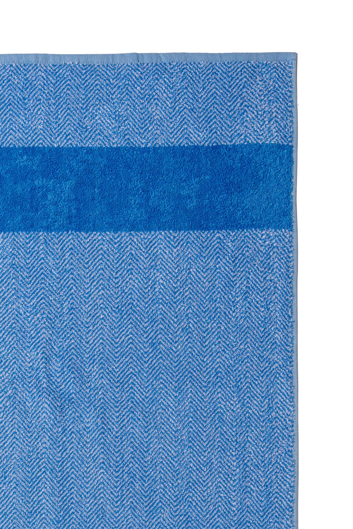 100x150 cm Ebatlarında Jakarlı Zigzag Desen Bukle İplik Boyalı Mavi-Beyaz Renkli bir Havlumuzdur.