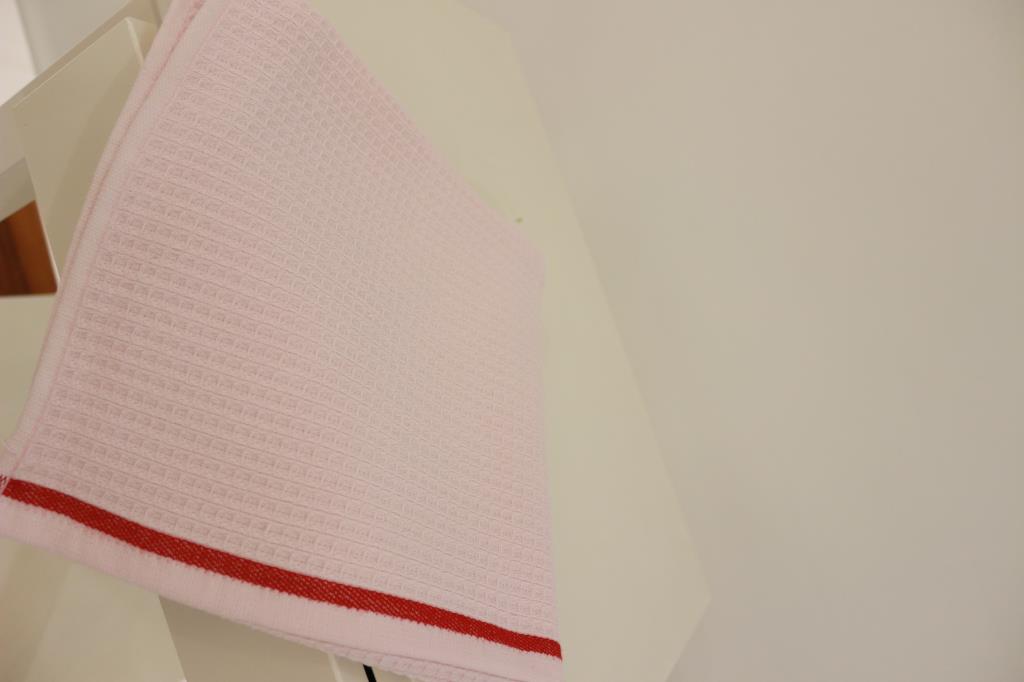 - Ekru Renkli ve Kırmızı Çizgi Bordürlü Havludur.