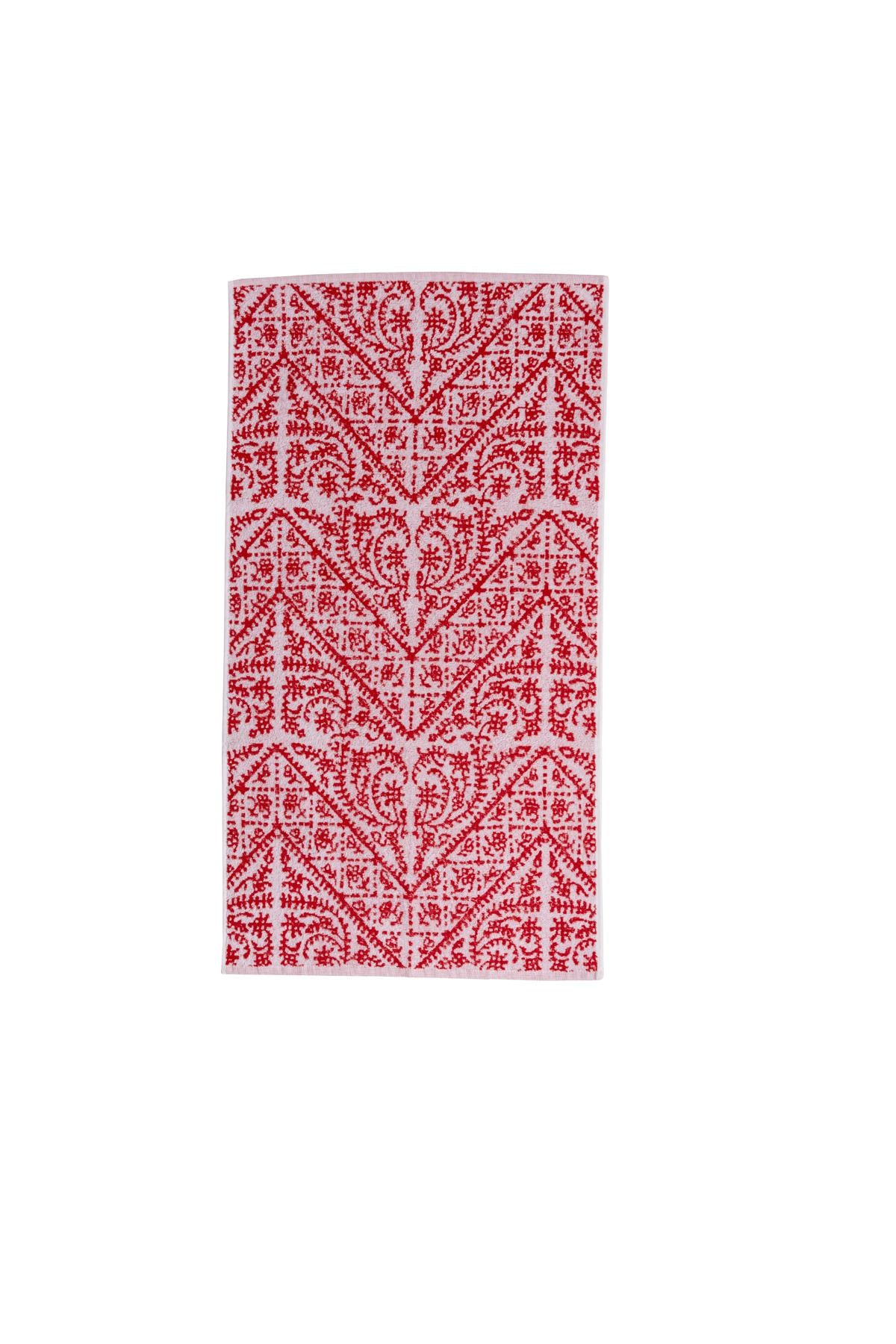 - Kırmızı Beyaz Renginde, İplik Boya Bukle Havlumuzdur.