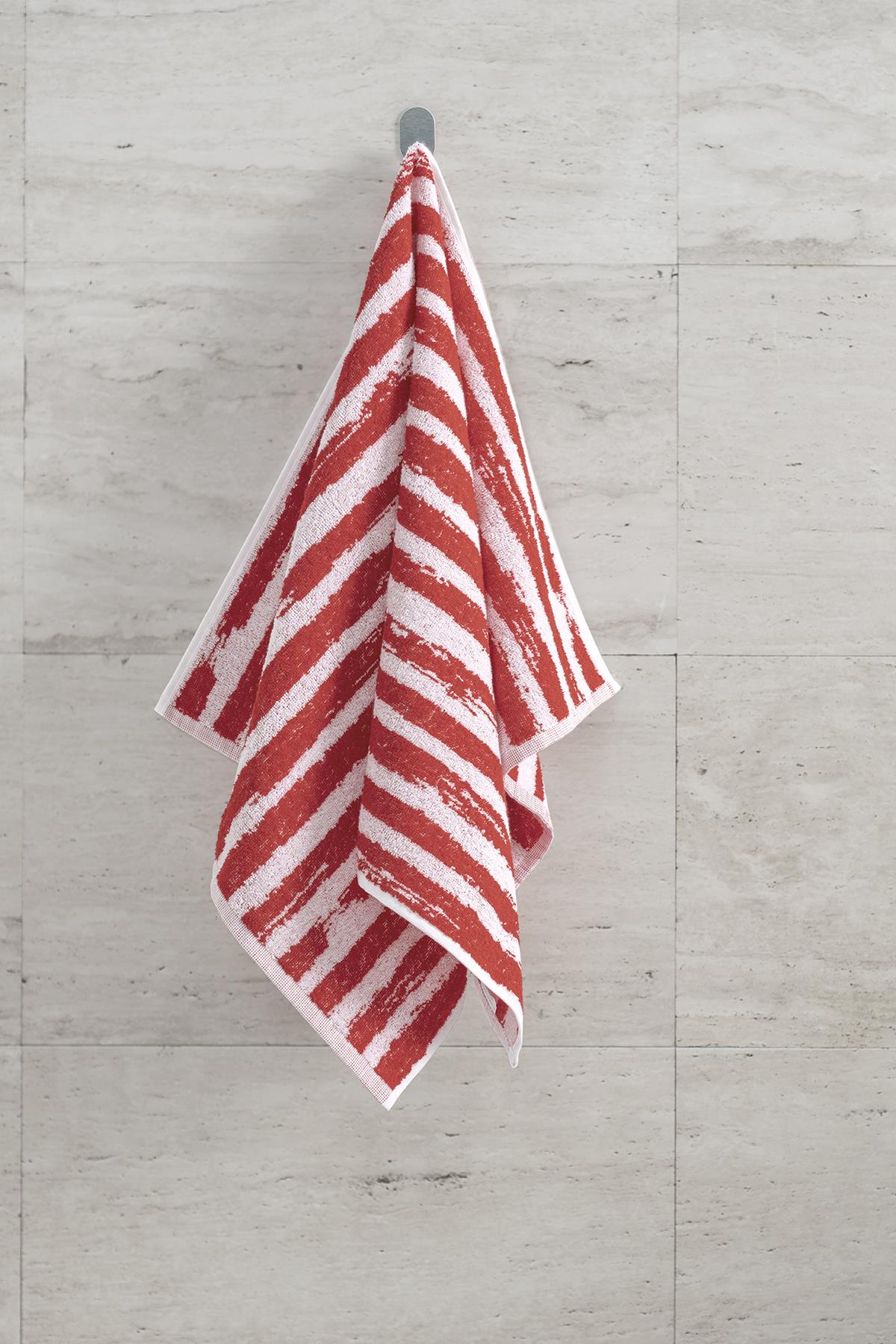 Kırmızı Beyaz Renginde, İplik Boya Bukle Havlumuzdur.