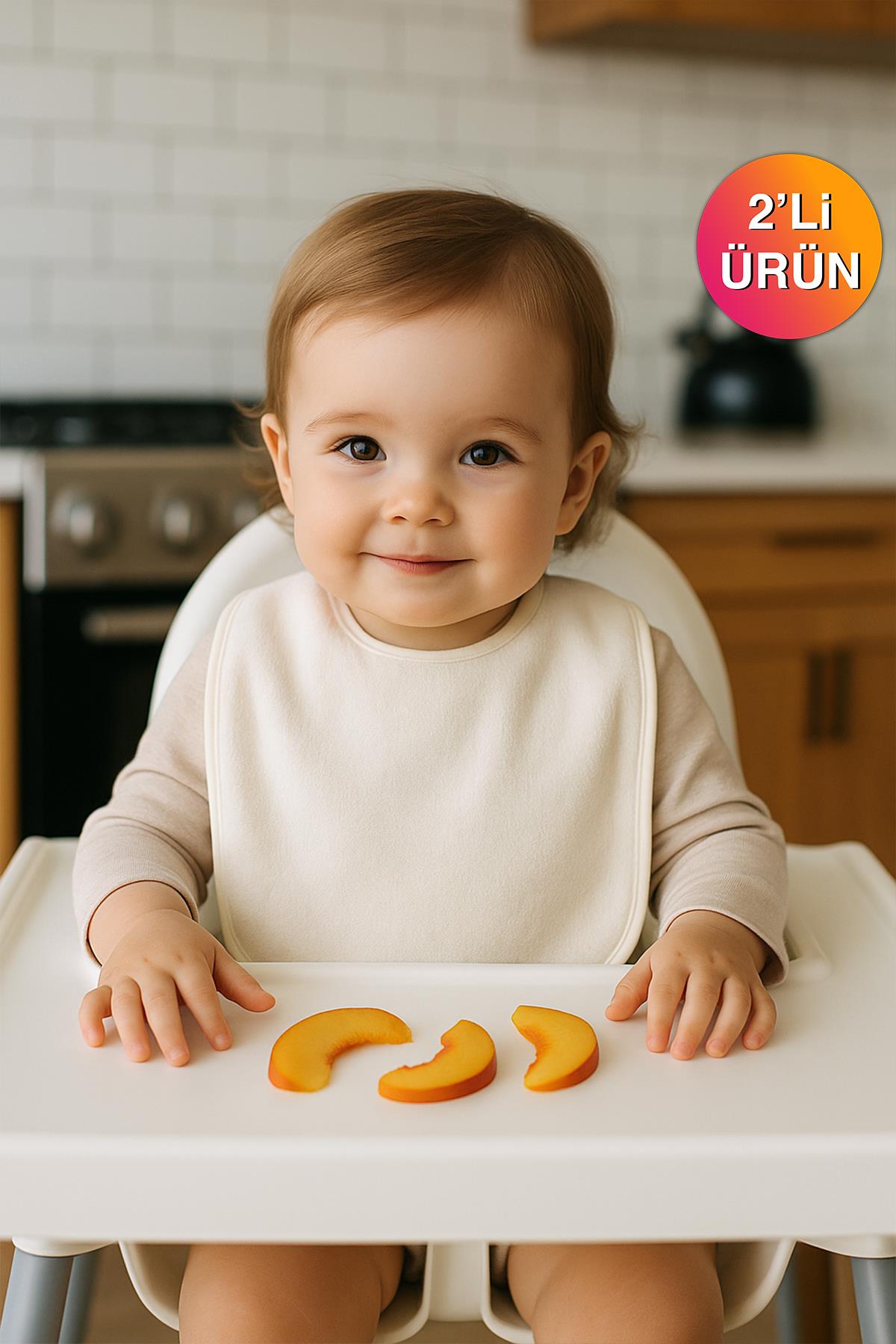 CottonVerse 2'li Bebek Mama Önlüğü – Sıvı Geçirmez %100 Pamuk Havlu 25x40 cm Ekru