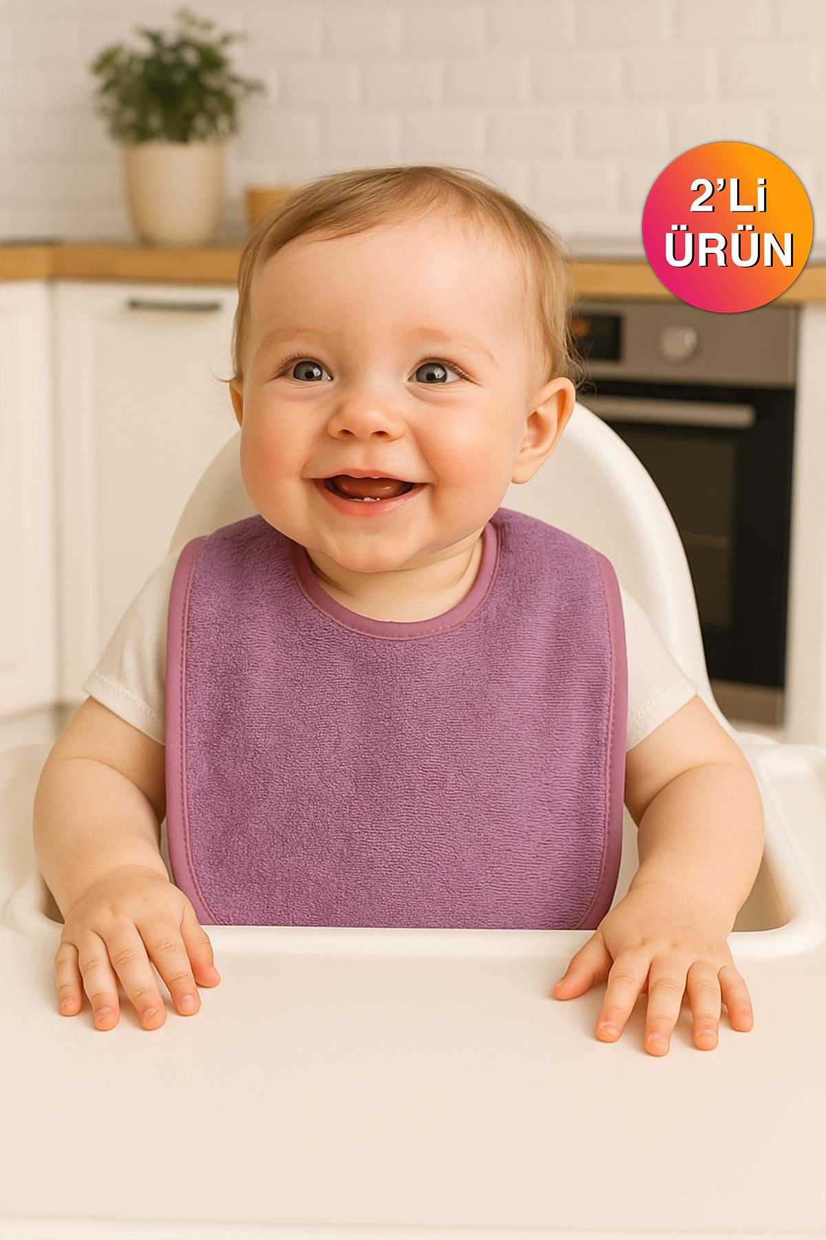 CottonVerse 2'li Bebek Mama Önlüğü – Sıvı Geçirmez %100 Pamuk Havlu 25x40 cm Lila