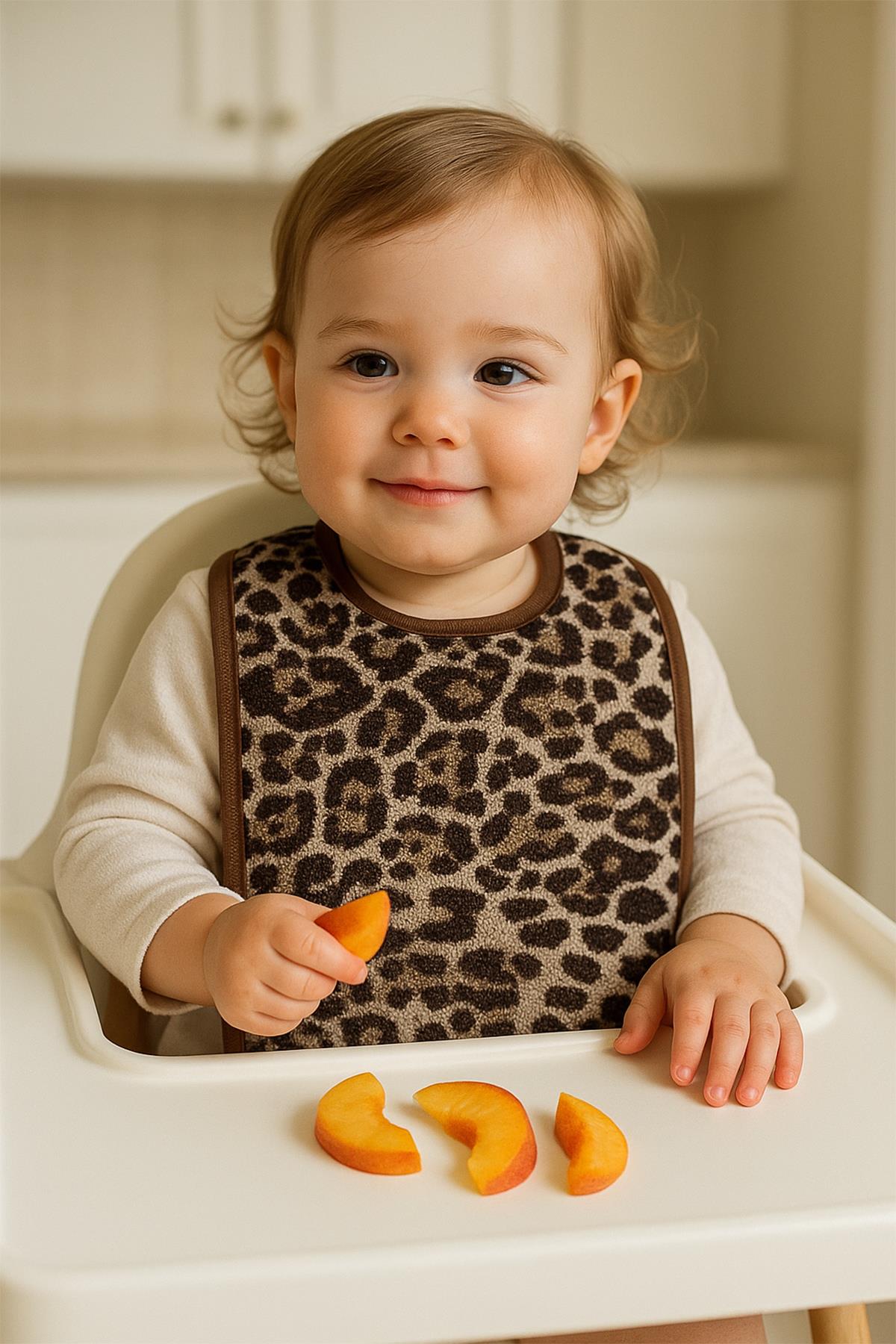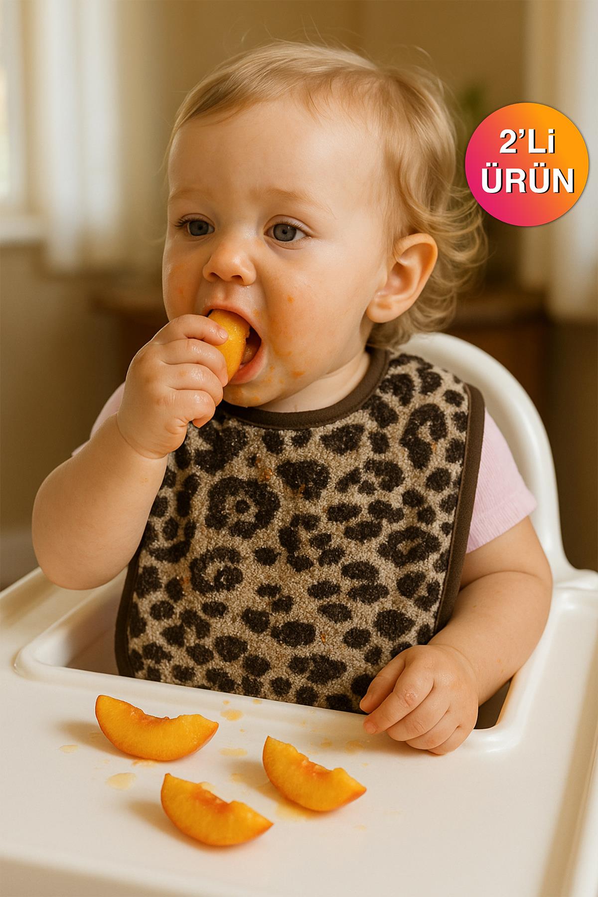 - Ender Home Leopar Desen 2'Li Havlu Su Geçirmez Bebek Mama Önlüğü Cırt Bantlı Çocuk Önlüğü