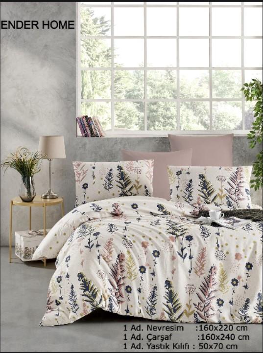 Ender Home Flower Desen Baskılı Tek Kişilik Nevresim Seti 160X220 Ranforce 3 Parça