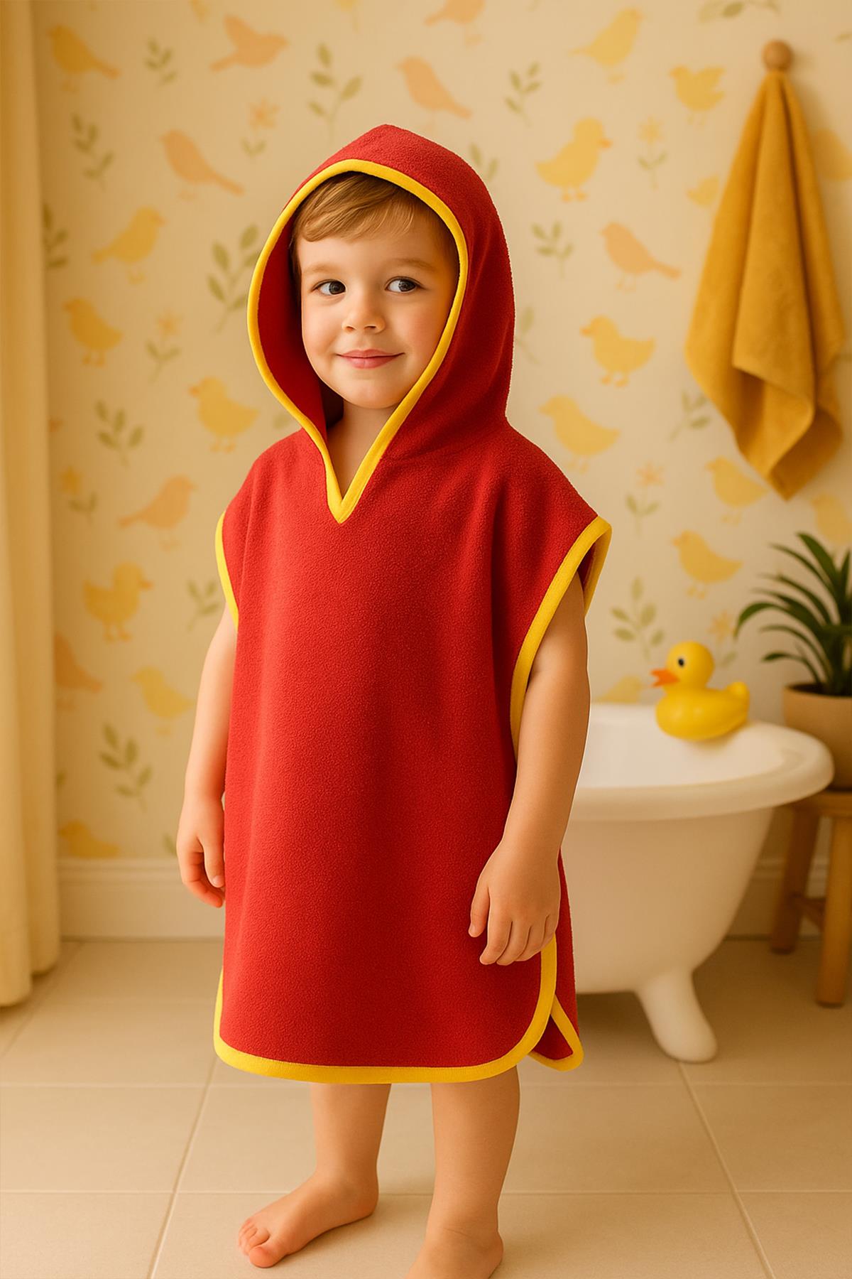 CottonVerse Havlu Panço – %100 Pamuk Kapüşonlu Kırmızı