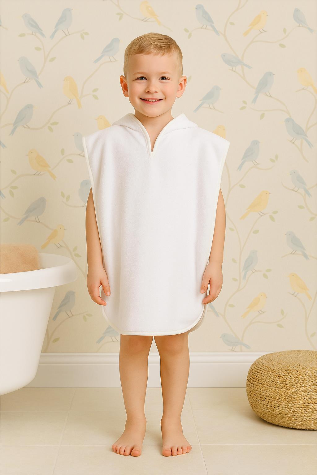 DreamSoft Kapüşonlu Kadife Havlu Panço Beyaz