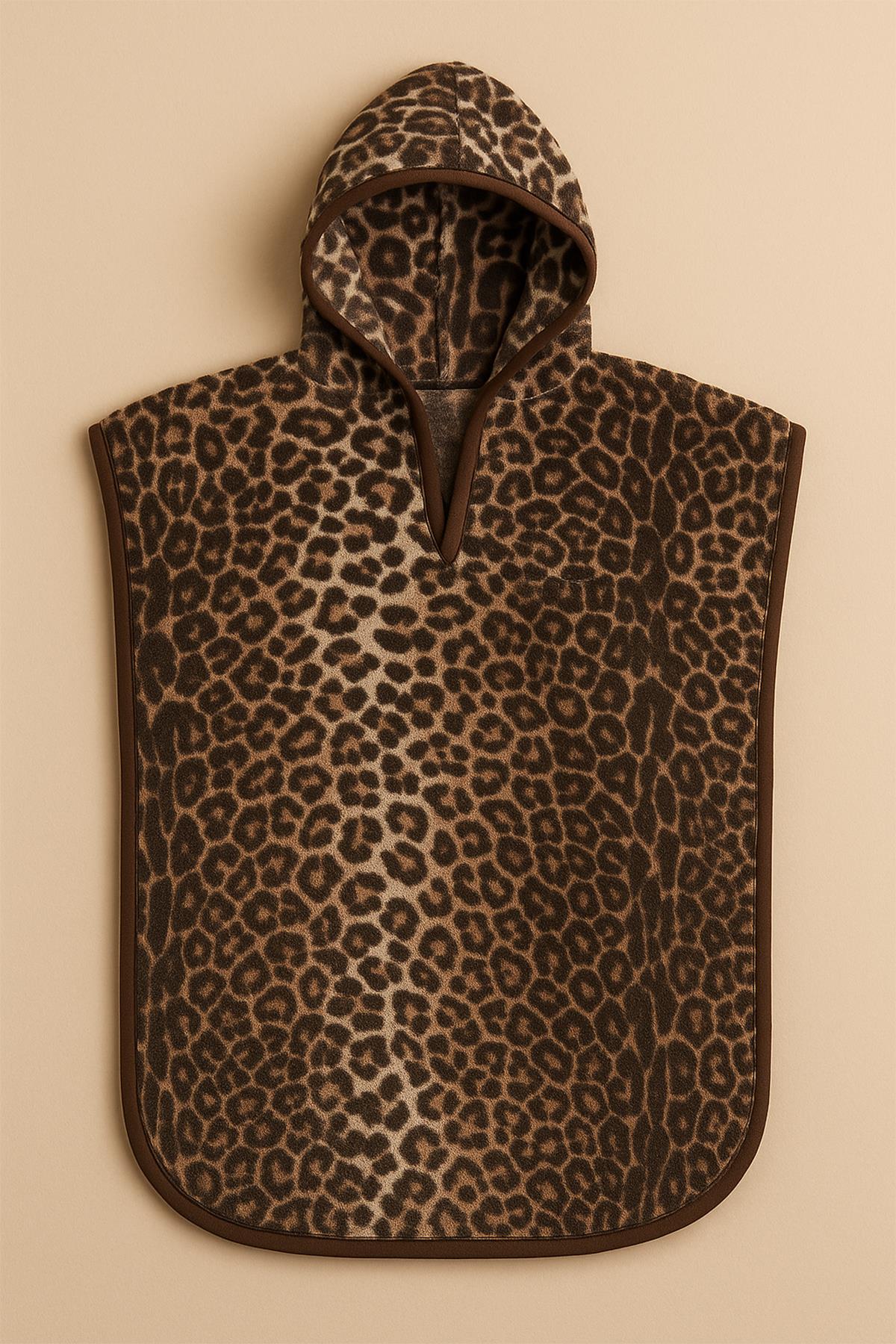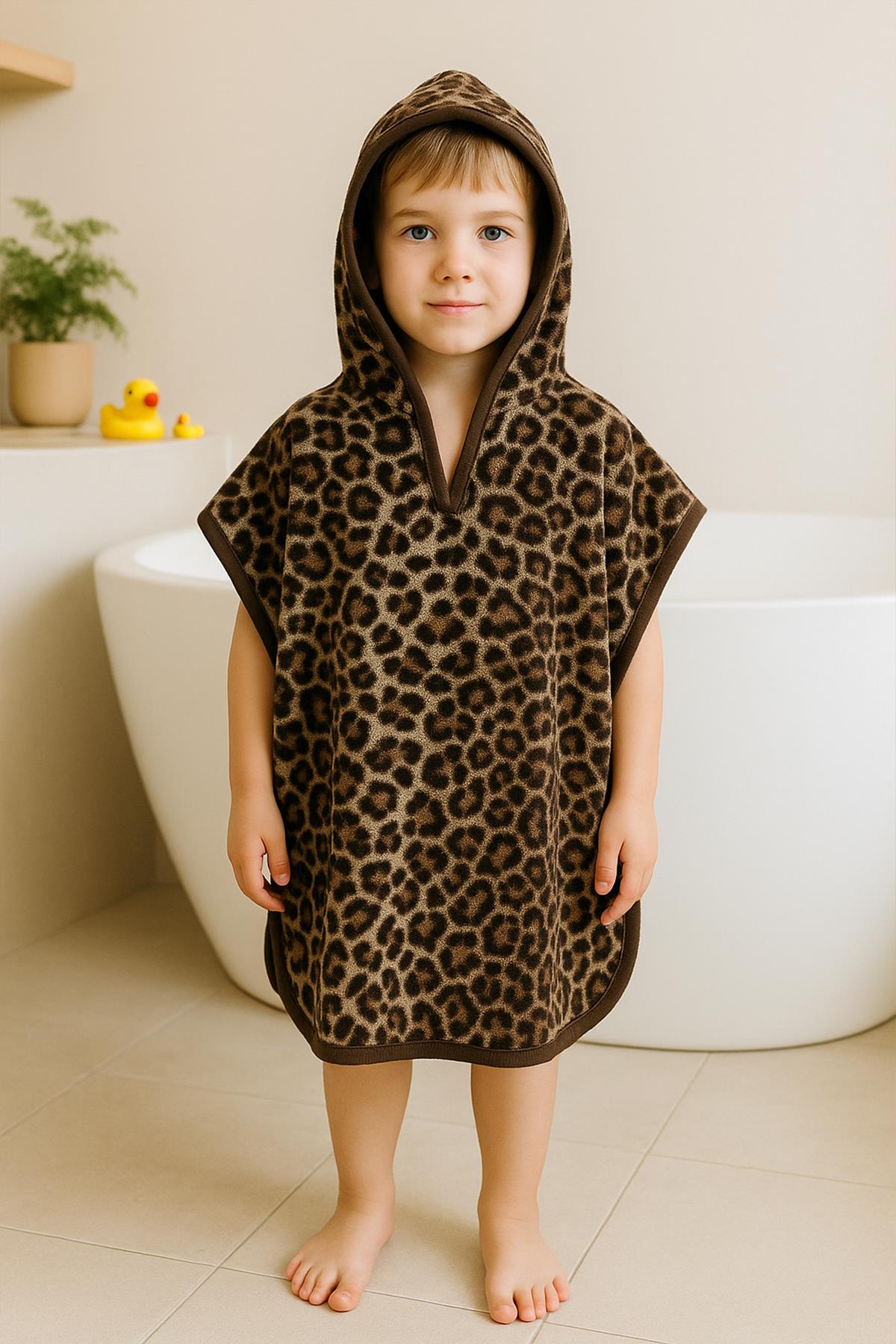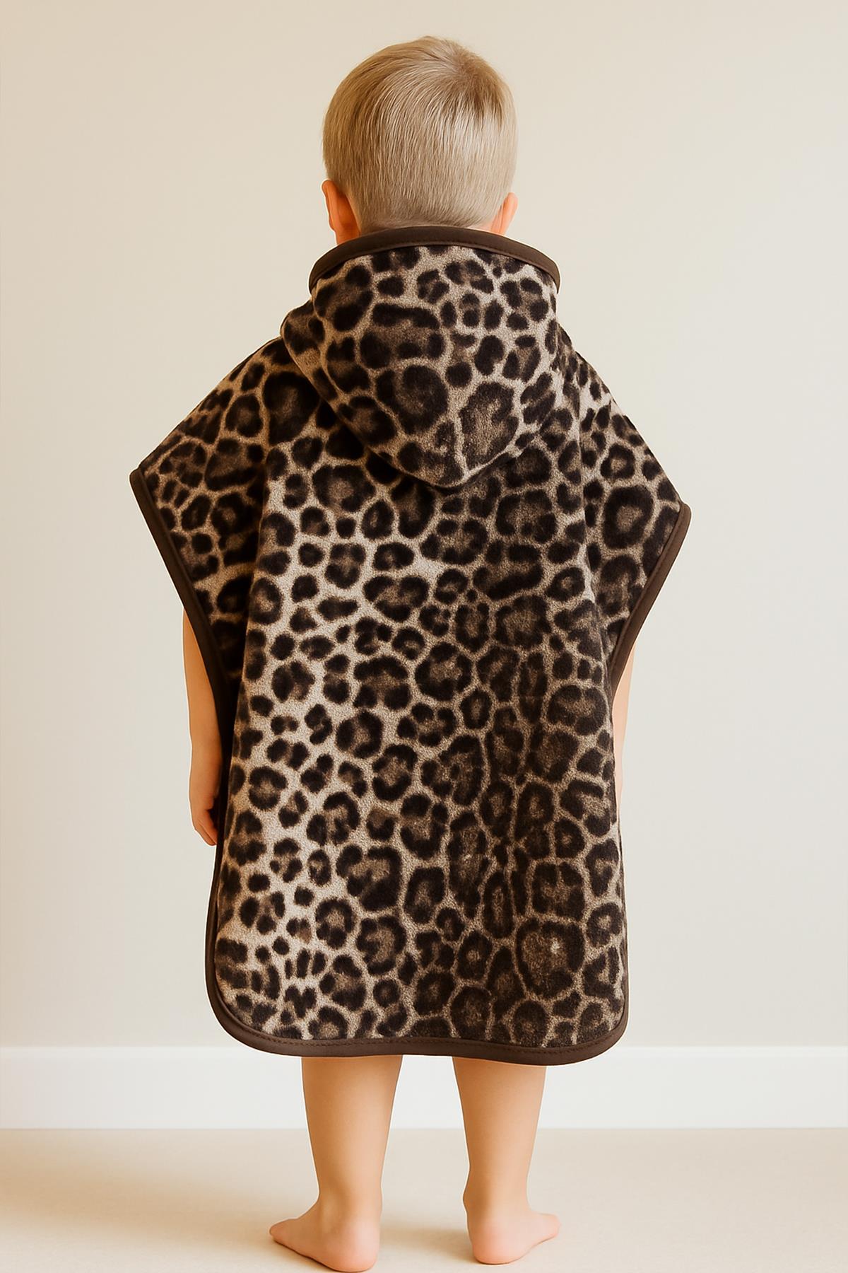 - Ender Home Leopar Desen Kapşonlu Çocuk Pançosu l %100 Pamuk