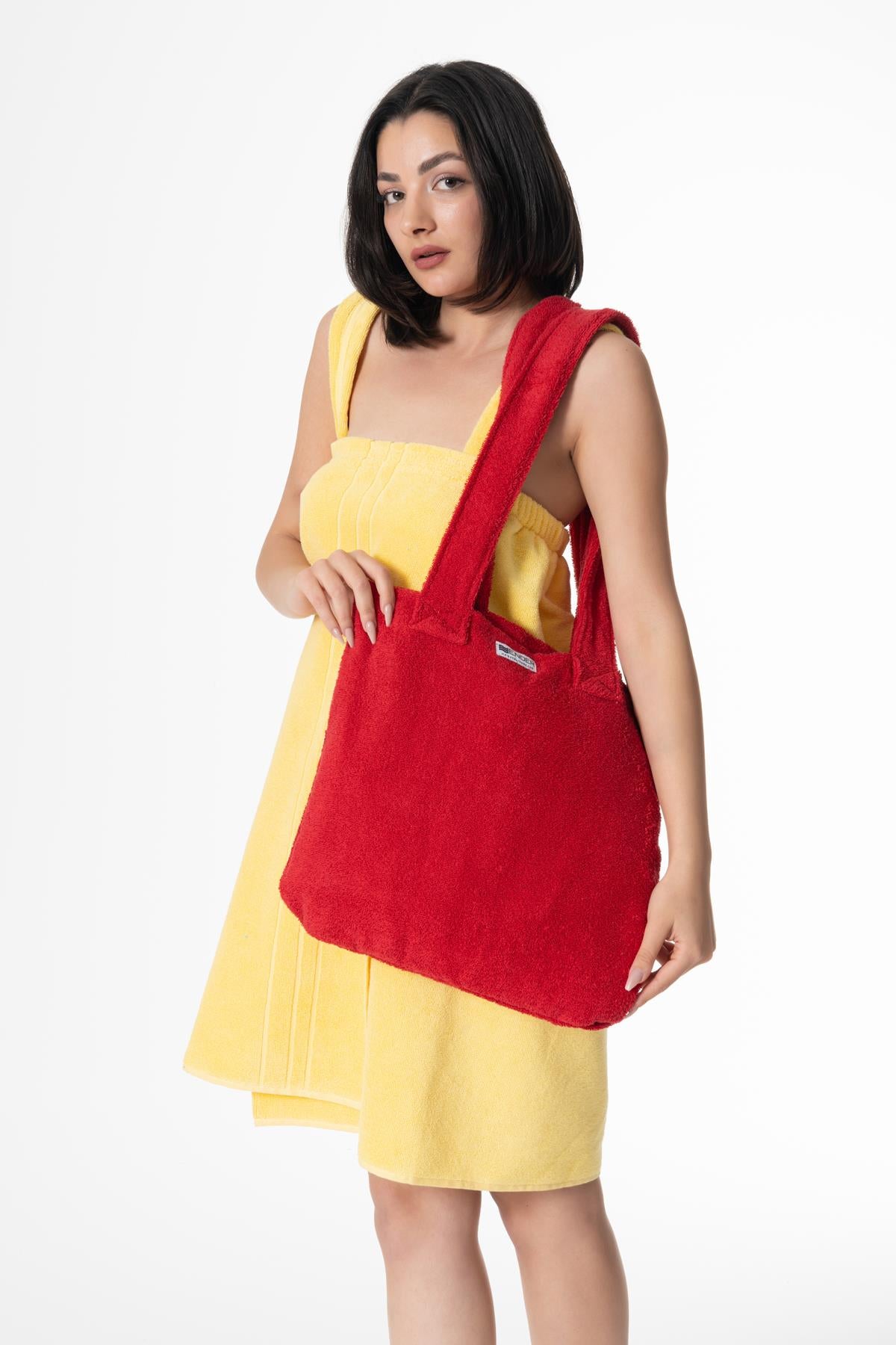 BeachMate Omuz Çantalı Plaj Havlusu – Fermuarlı , Cepli, Taşınabilir Konfor Kırmızı