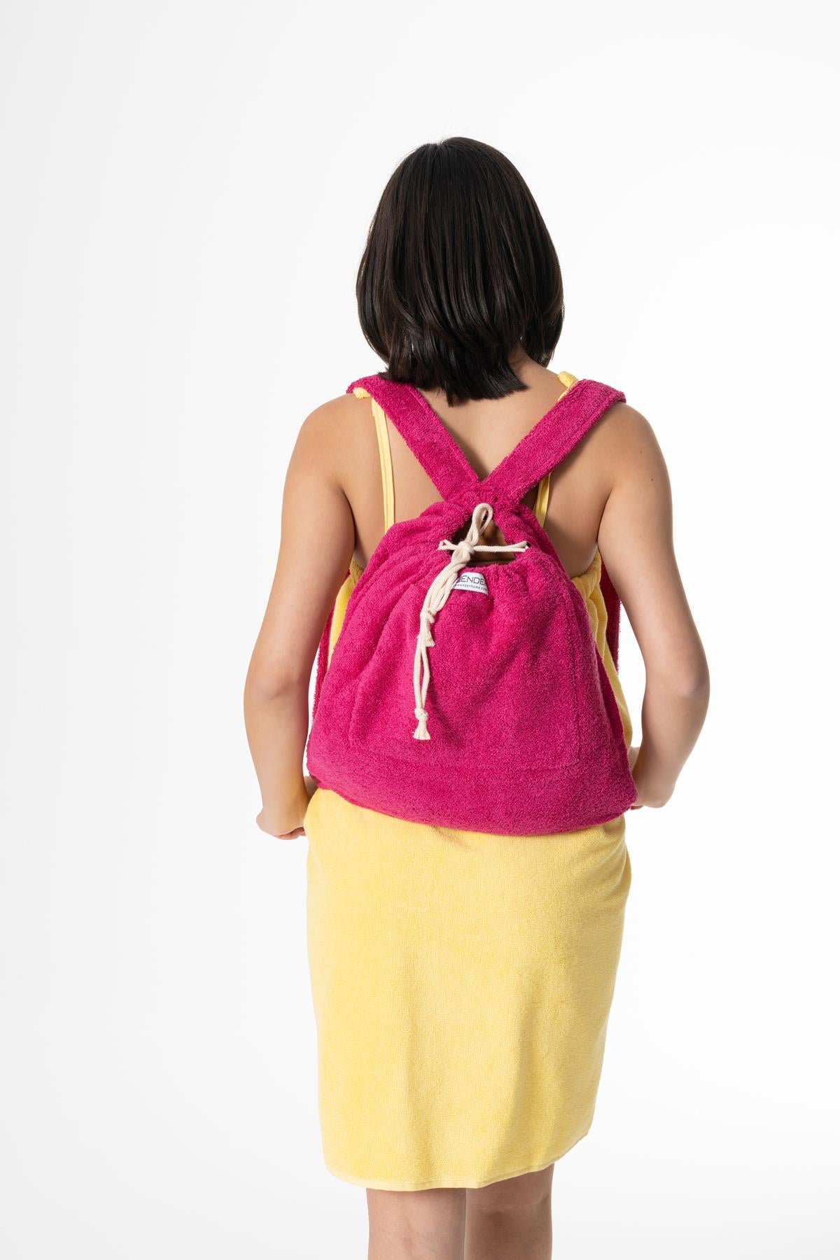 BeachMate Sırt Çantalı Plaj Havlusu – Fermuarlı , Cepli, Taşınabilir Konfor Fuşya