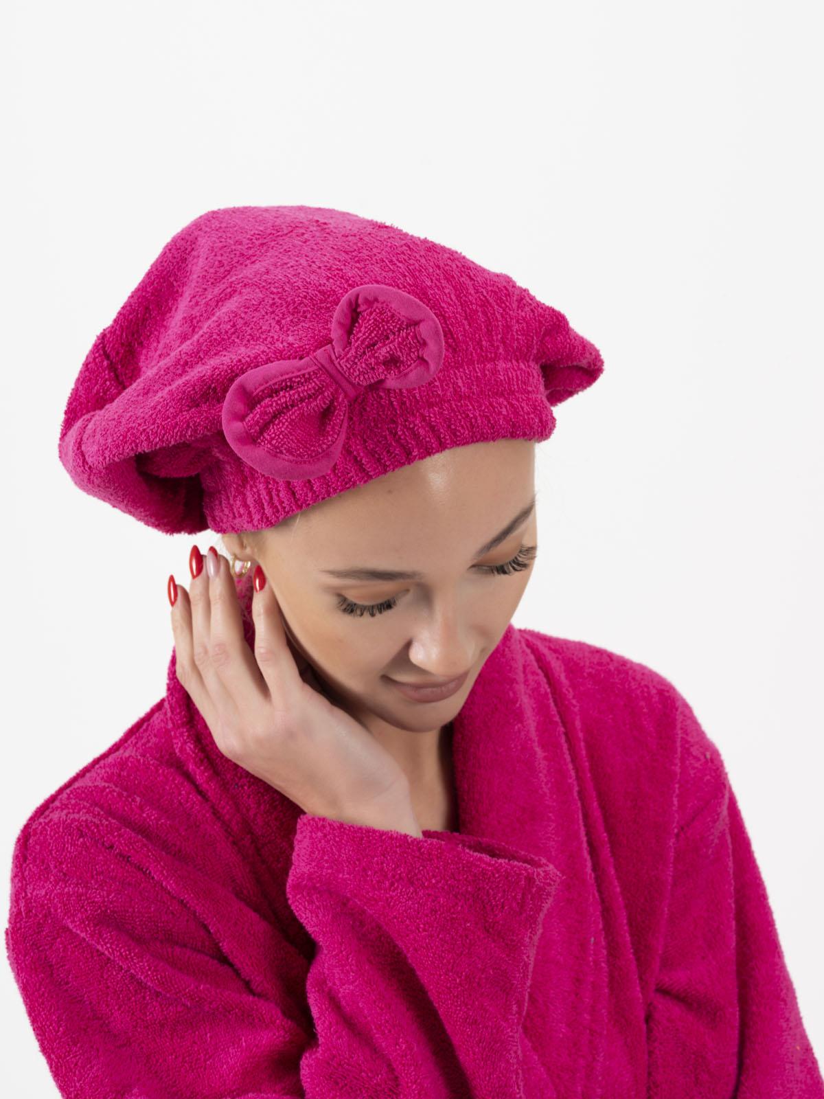 CottonVerse Saç Kurulama Bonesi – %100 Pamuk , Fiyonklu Fuşya
