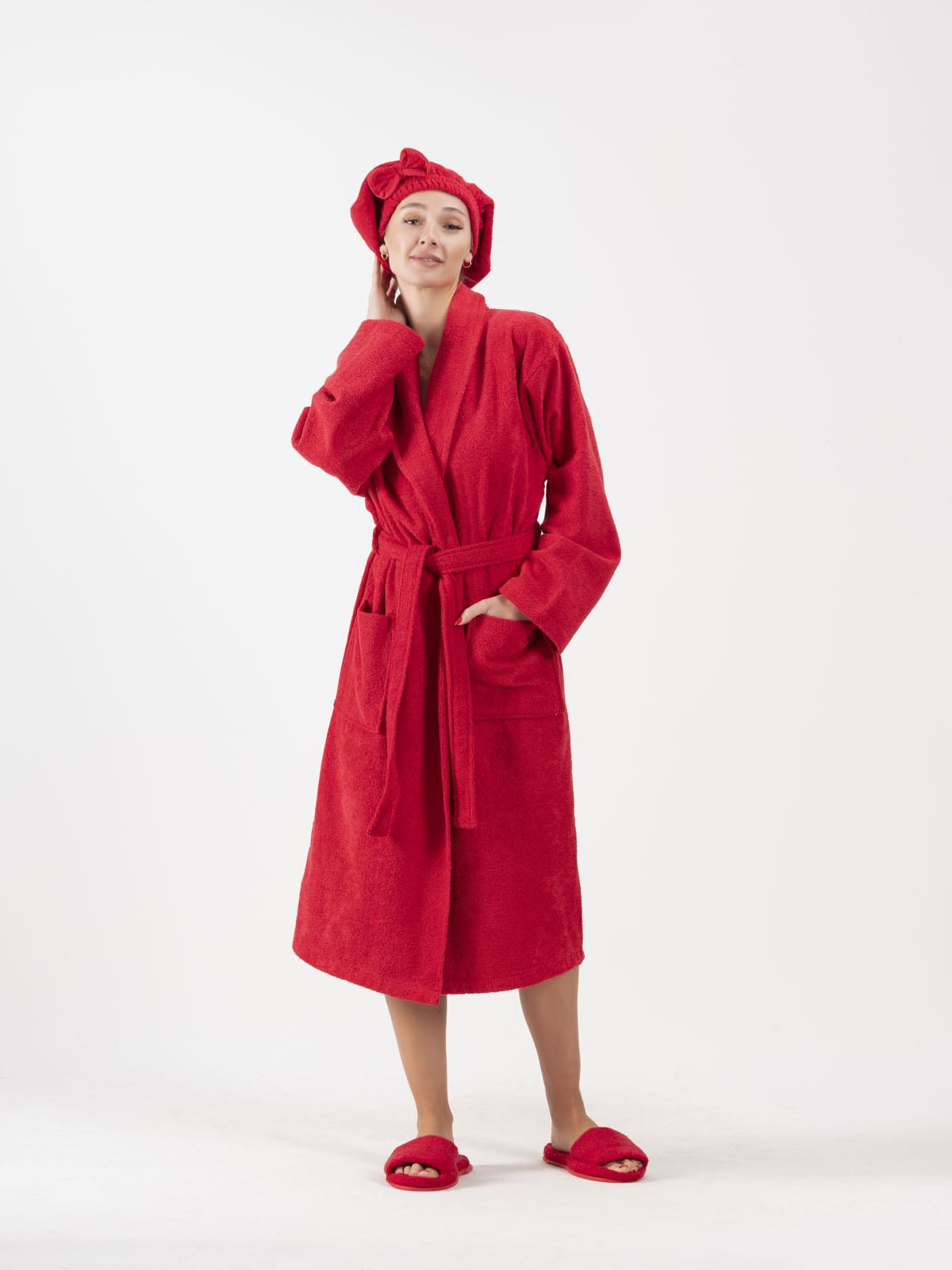 CottonVerse Saç Kurulama Bonesi – %100 Pamuk , Fiyonklu Kırmızı