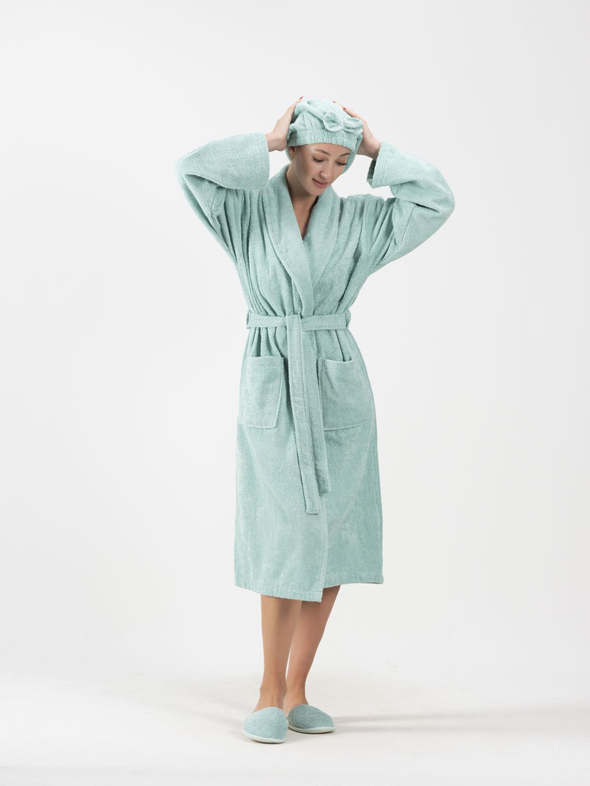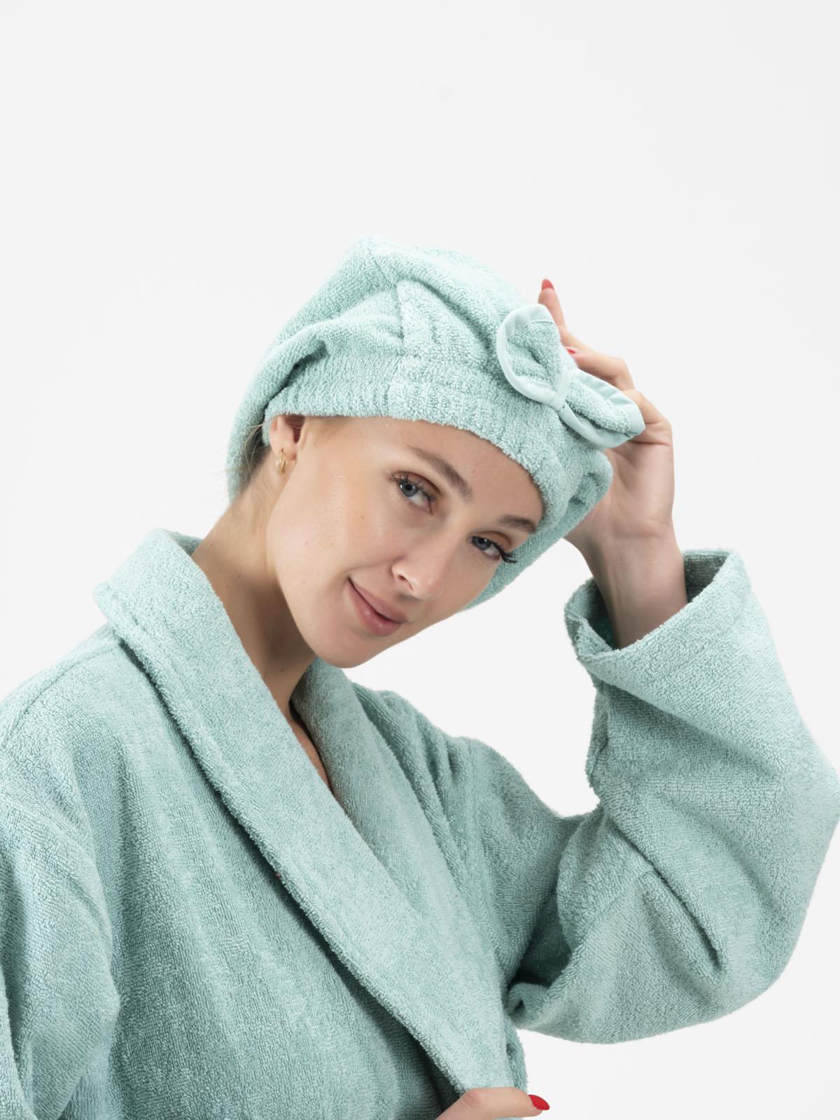 CottonVerse Saç Kurulama Bonesi – %100 Pamuk , Fiyonklu Su Yeşili