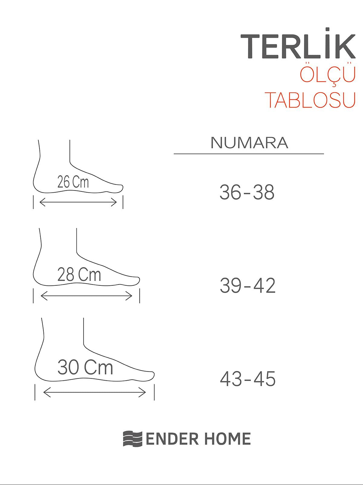 43-45 Numaralar arası Terlik ve Ayakkabı giyenler için Alt Taban Uzunluğu: 30 cm olan 43/45 Beden Numarayı Tercih etmeleri uygundur.
