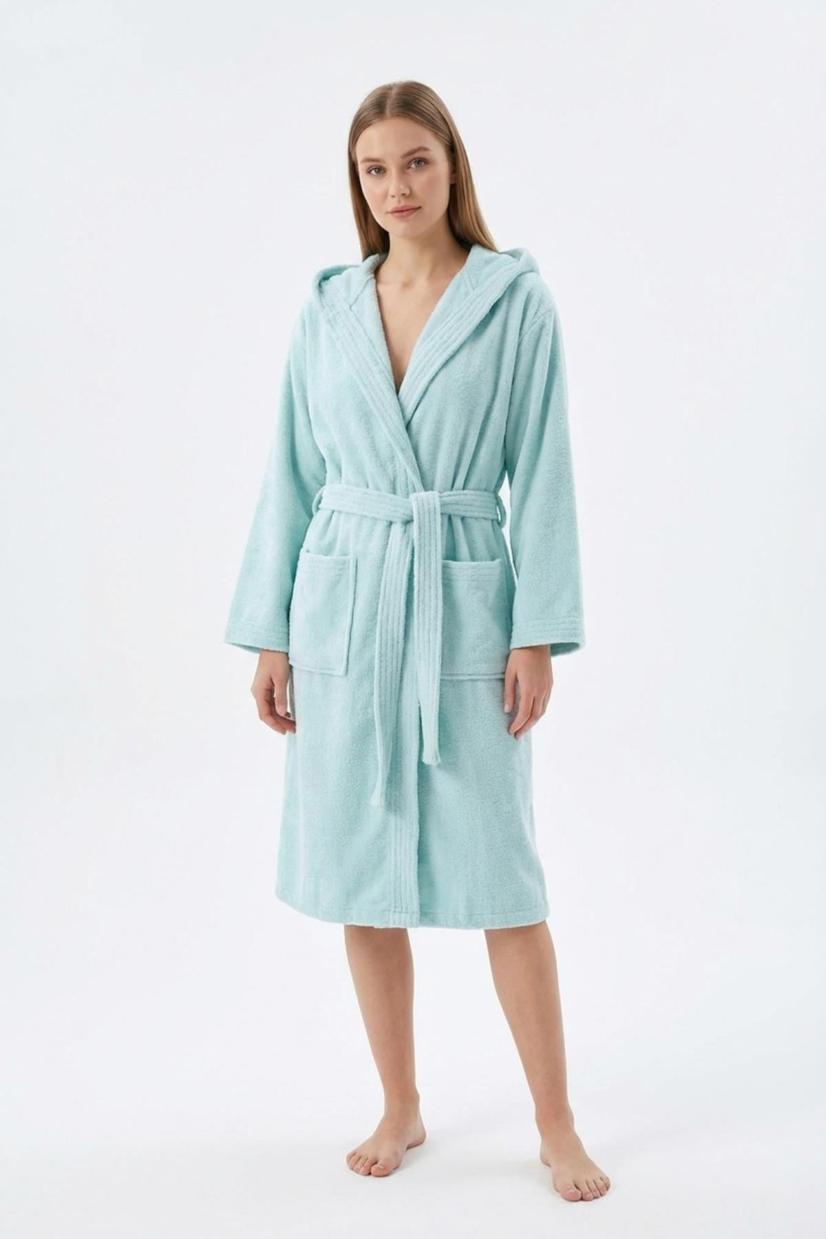 CottonVerse Kapüşonlu Bornoz – %100 Pamuk , Unisex Mint
