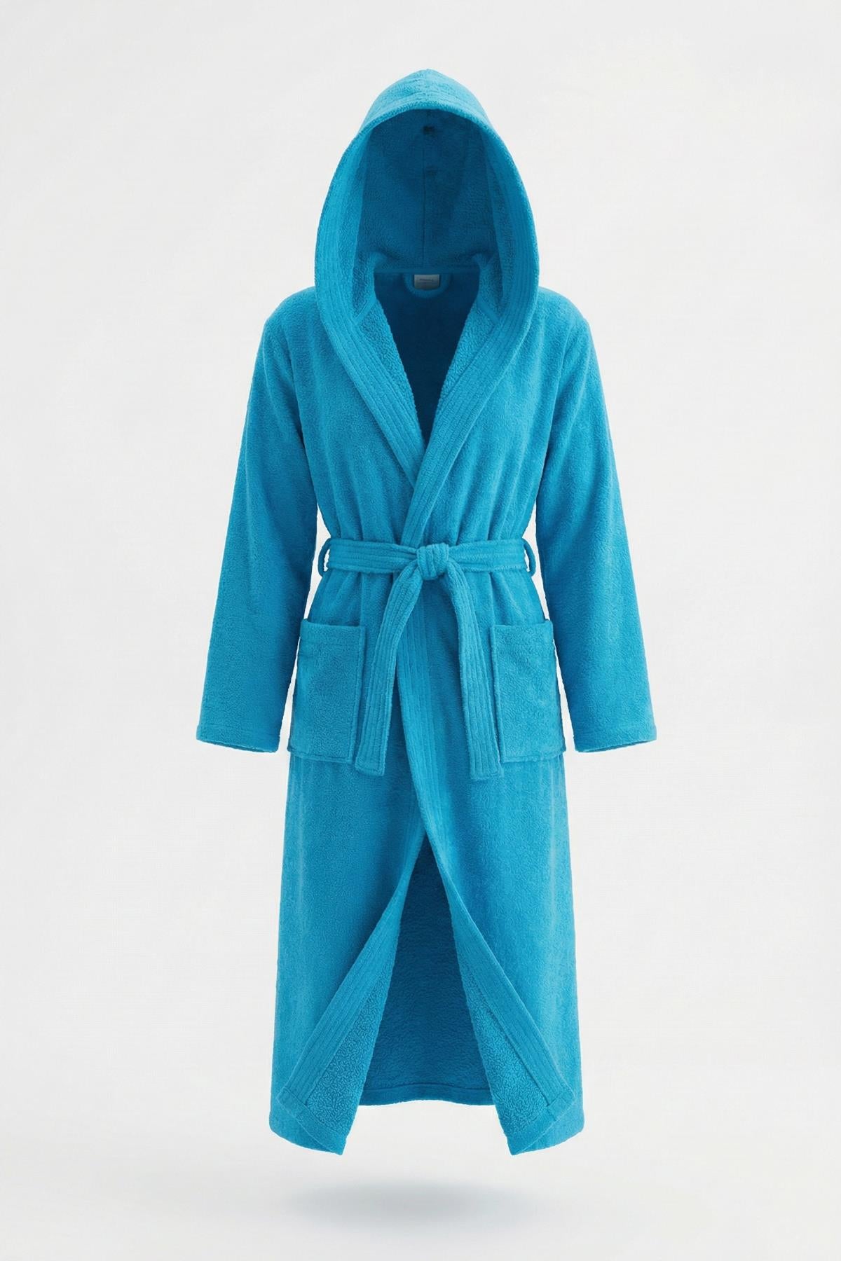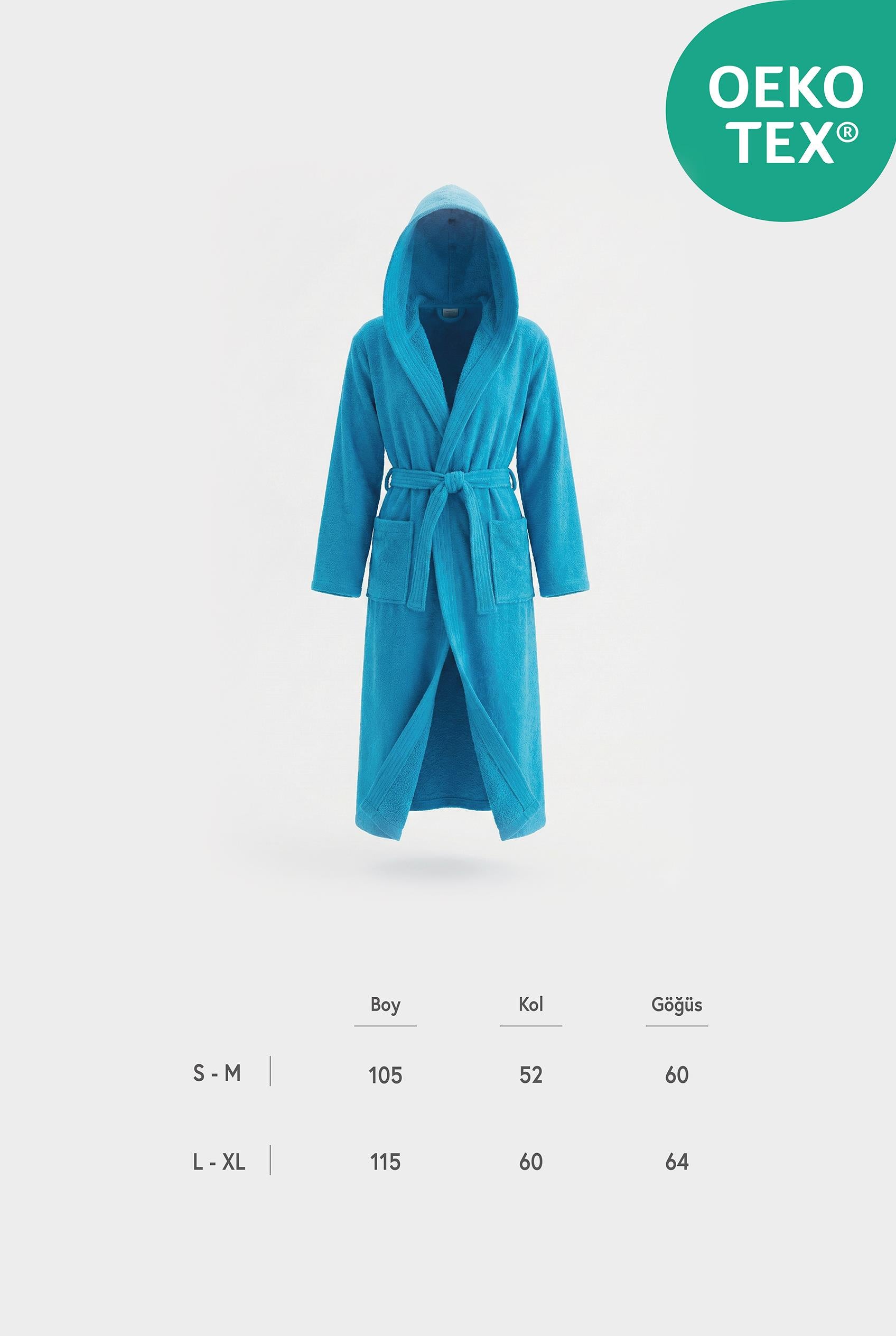 CottonVerse Kapüşonlu Bornoz – %100 Pamuk , Unisex Turkuaz