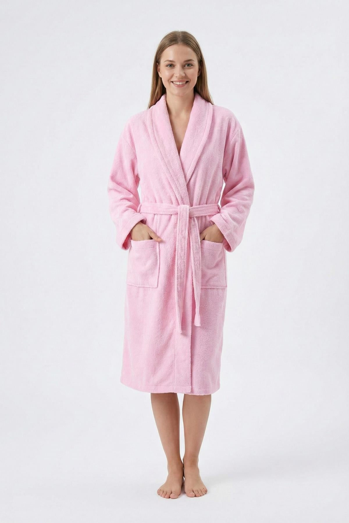 CottonVerse Şalyaka Bornoz – %100 Pamuk, Unisex Açık Pembe