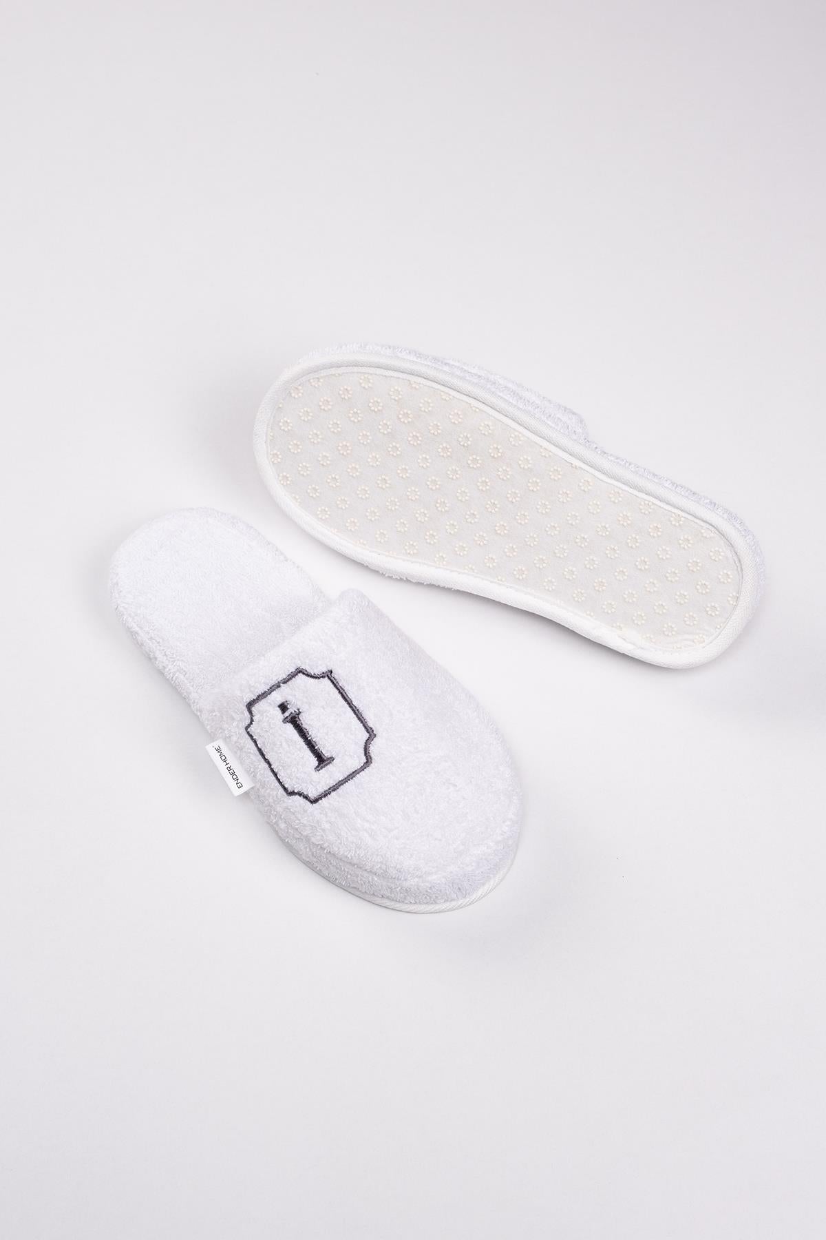 İ Harf Nakışlı Banyo Ve Ev Havlu Terliği – %100 Pamuk Kaymaz Kalın Taban