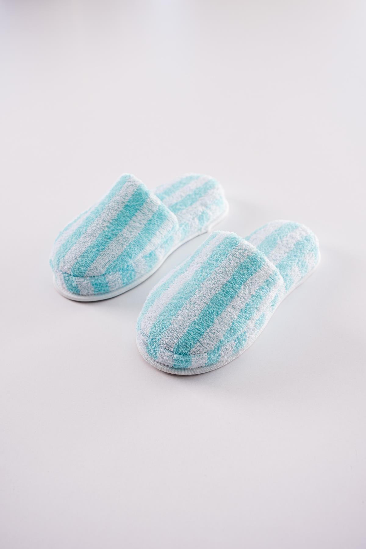 İpliği Boyalı Banyo Ve Ev Terliği – %100 Pamuk Havlu Kaymaz Kalın Taban Turkuaz