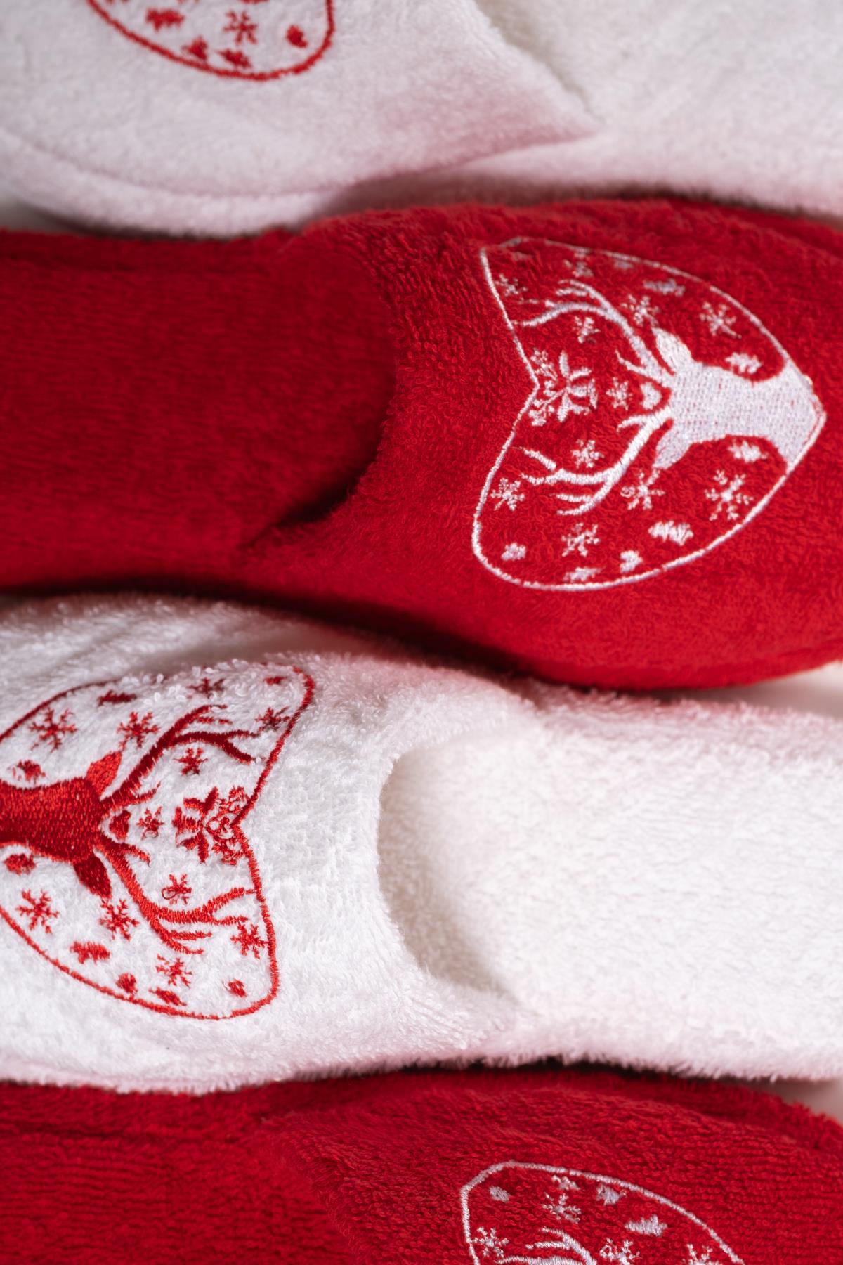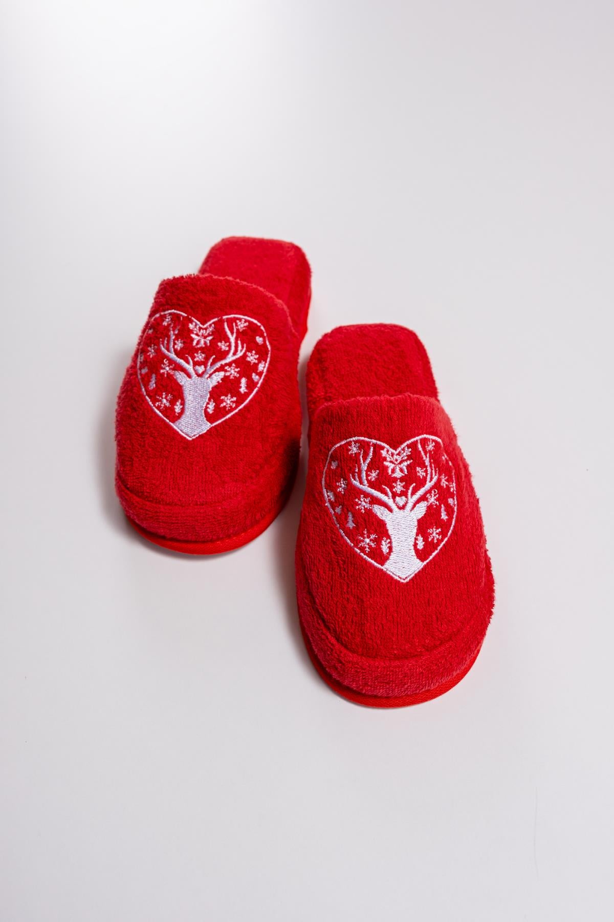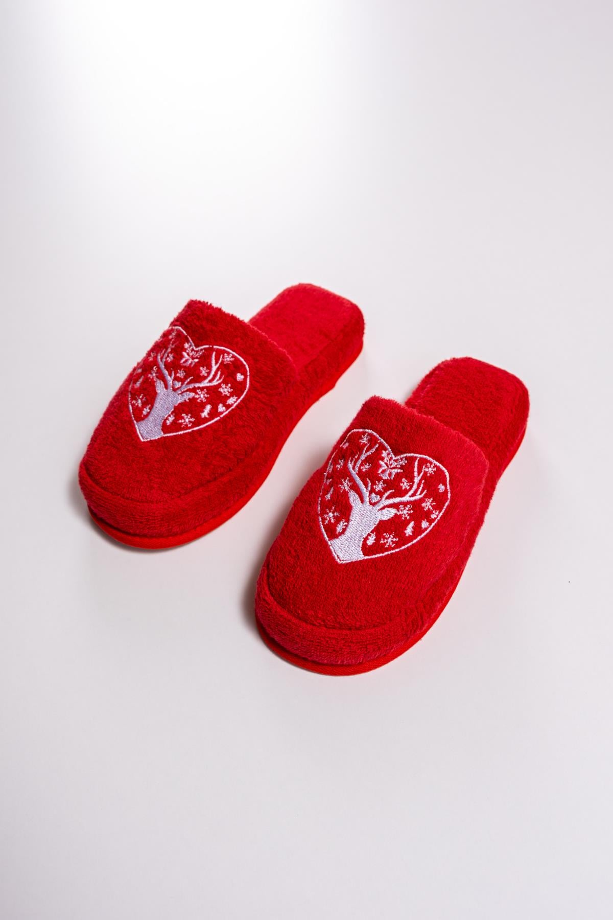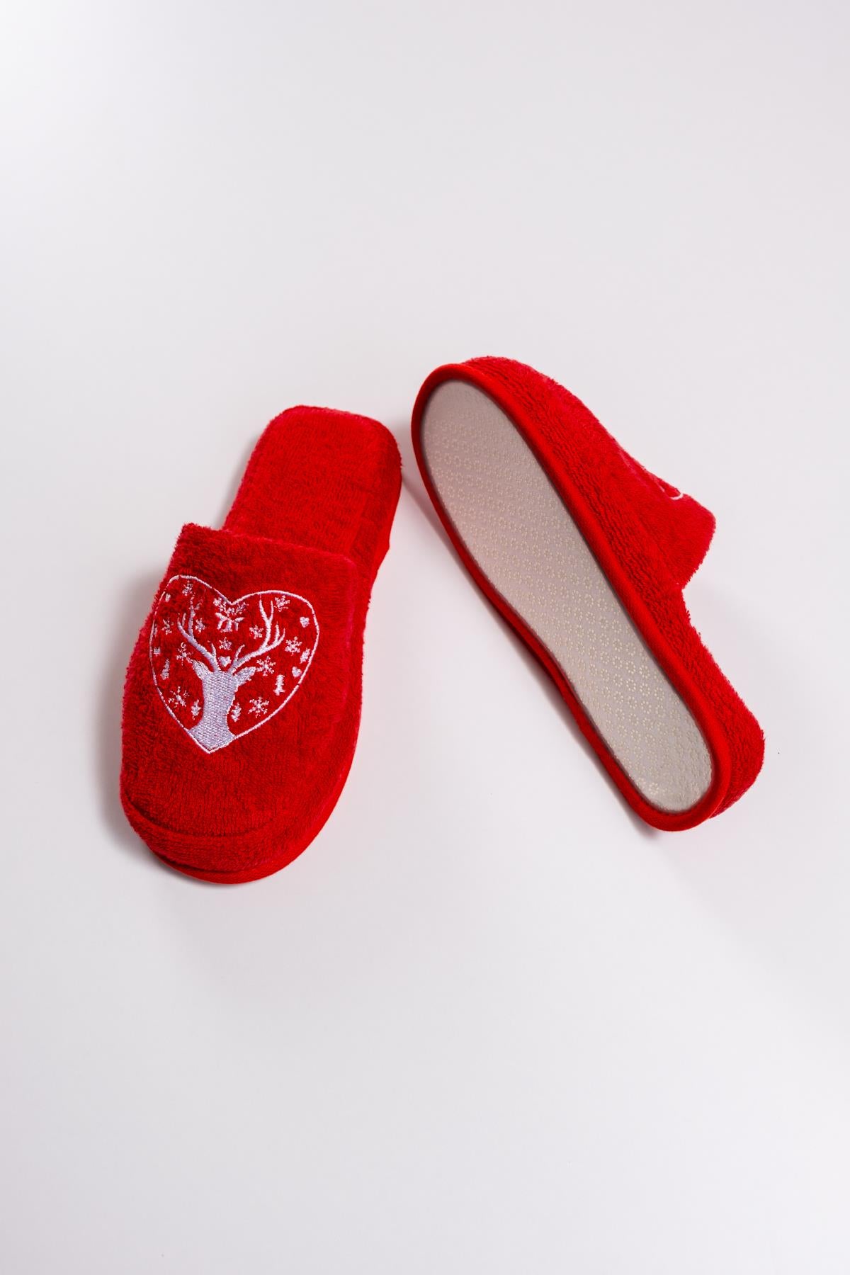 - Ender Home Kalp Nakışlı Terlik Ev Otel Spa Misafir Kalın Taban Panduf Yeni Yıl Yılbaşı Ev Terliği