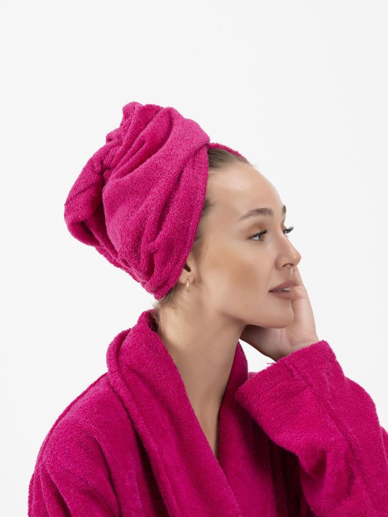 CottonVerse Düğmeli %100 Pamuk Saç Kurulama Bonesi Fuşya