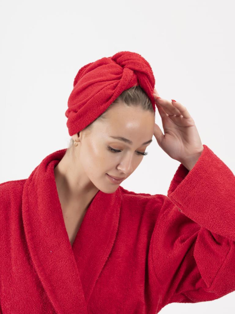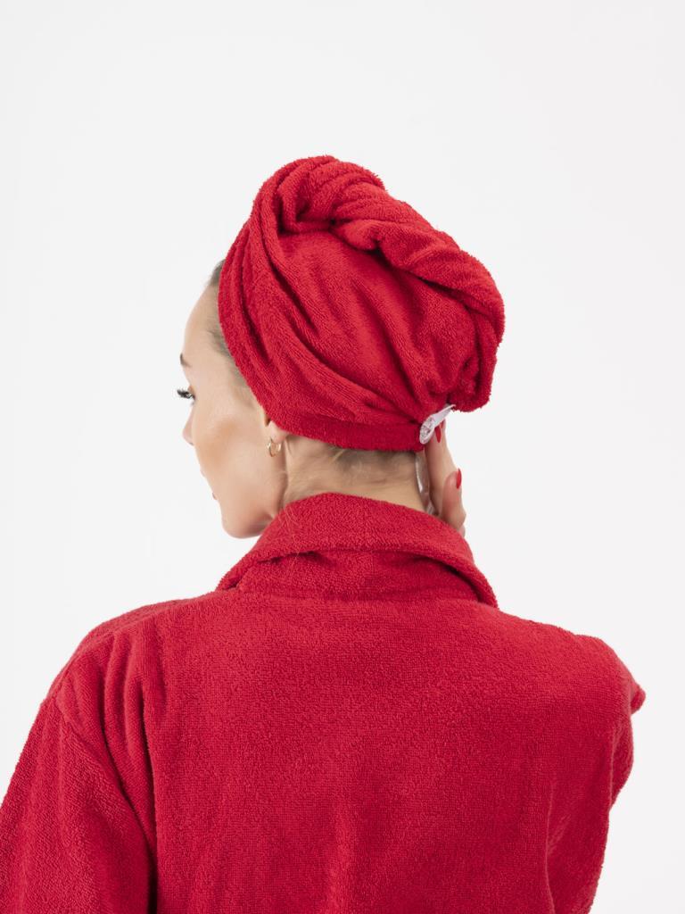 CottonVerse Düğmeli %100 Pamuk Saç Kurulama Bonesi Kırmızı
