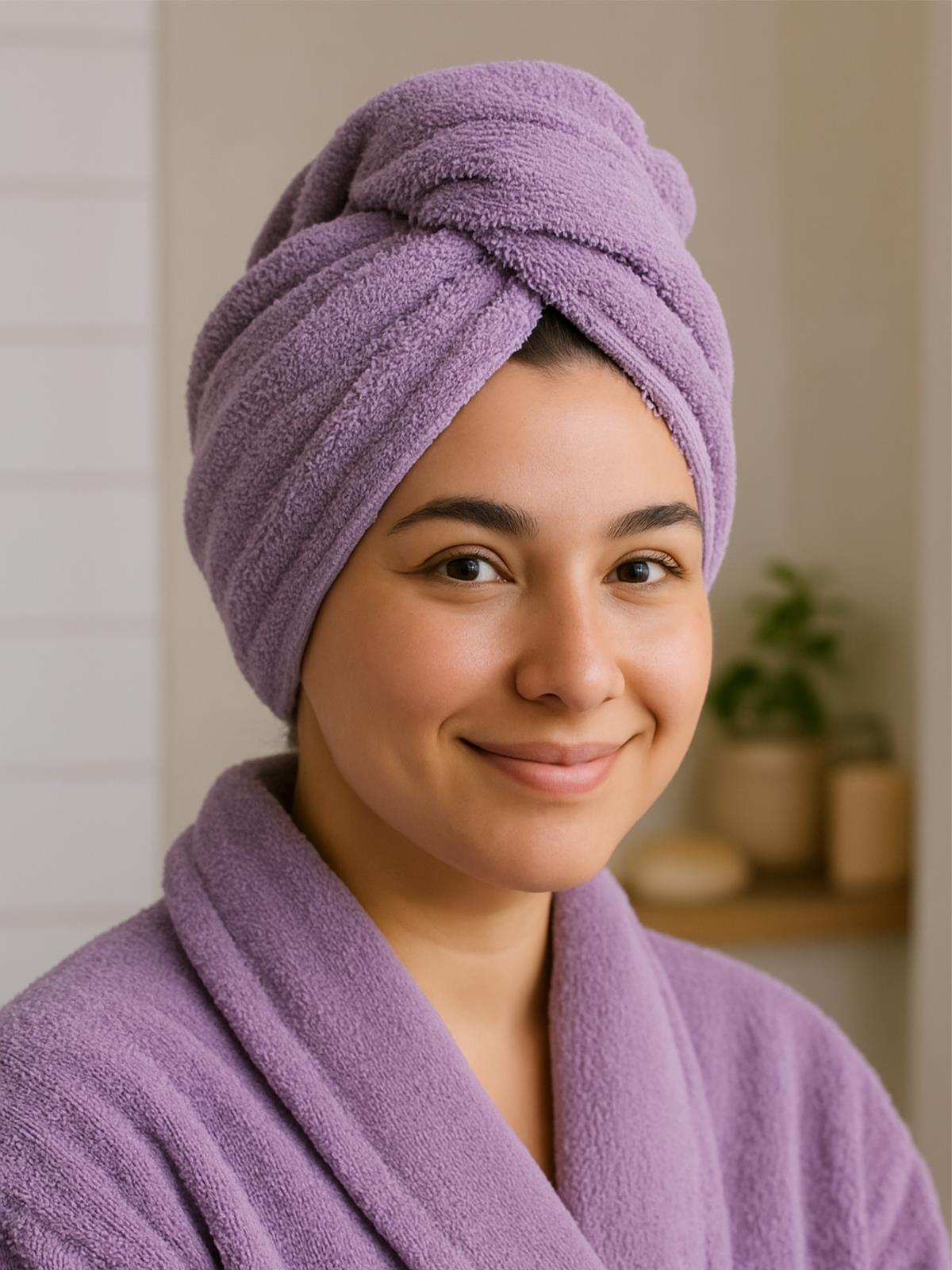 CottonVerse Düğmeli %100 Pamuk Saç Kurulama Bonesi Lila