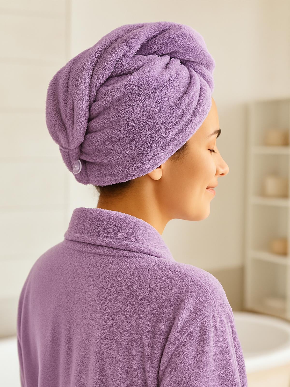 - Ender Home Havlu Düğmeli Saç Kurulama Bonesi Baş Havlusu Saç Kurutma Bonesi Makyaj ve Banyo Havlusu