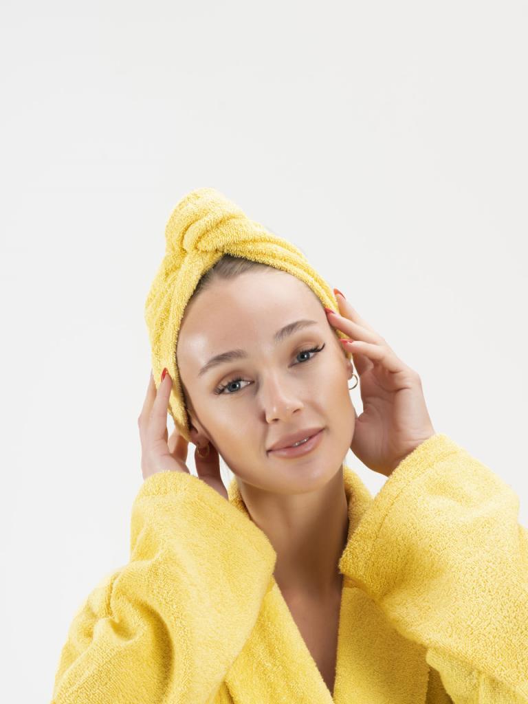 CottonVerse Düğmeli %100 Pamuk Saç Kurulama Bonesi Sarı