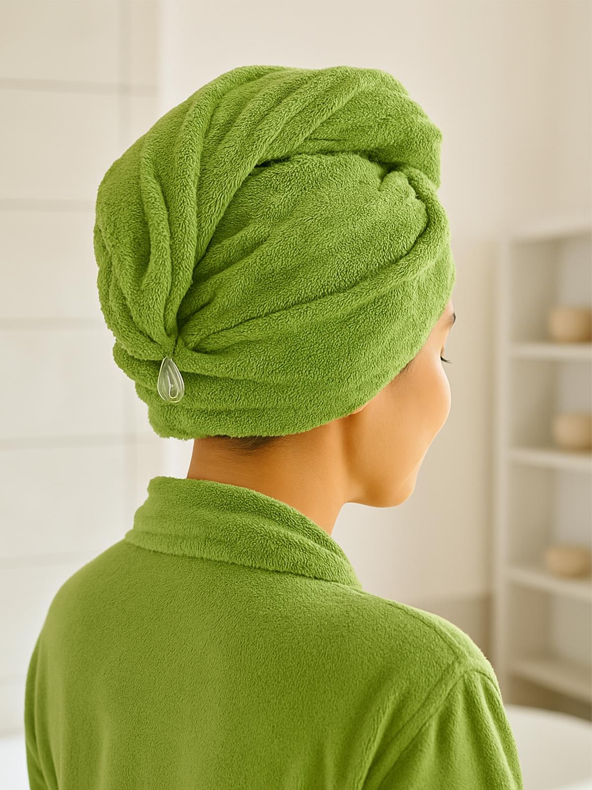 CottonVerse Düğmeli %100 Pamuk Saç Kurulama Bonesi Yeşil