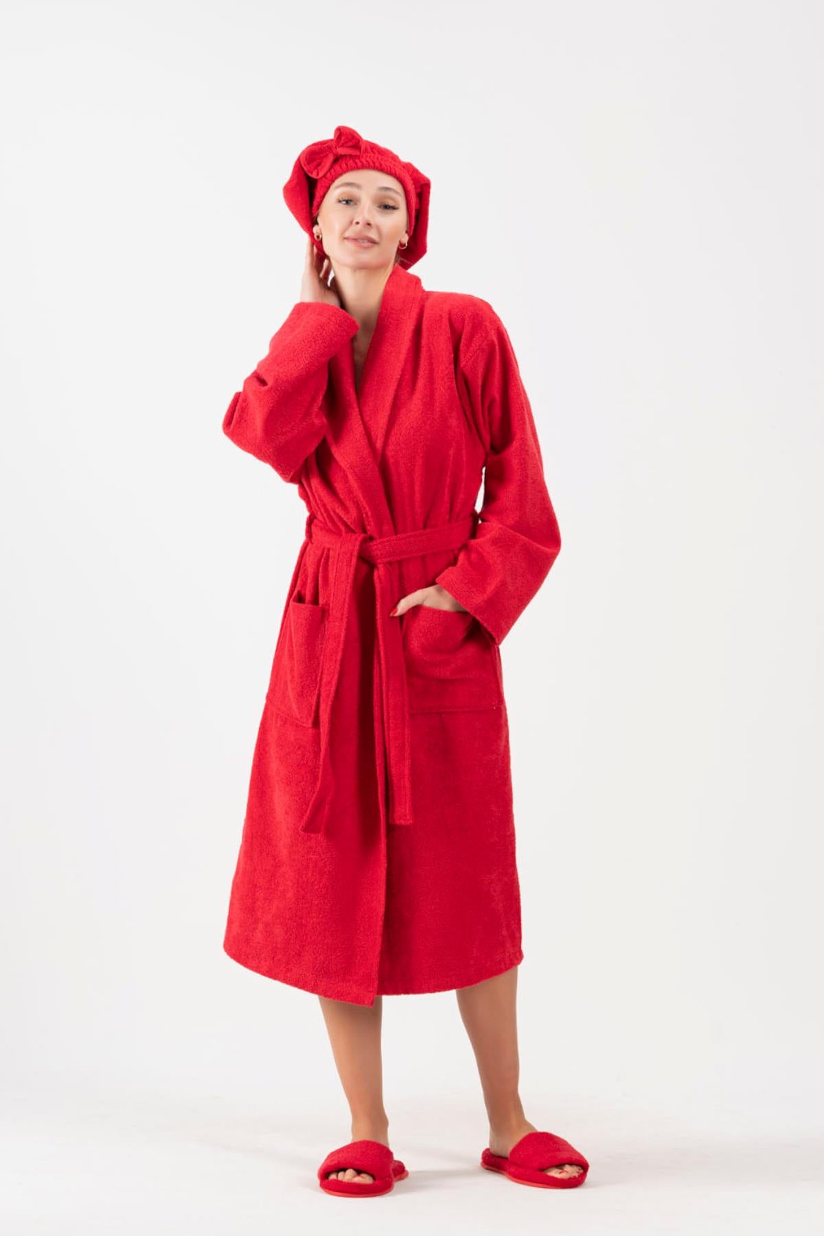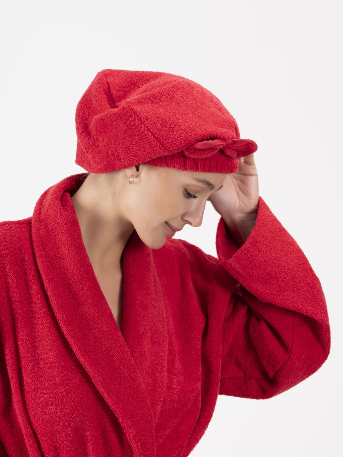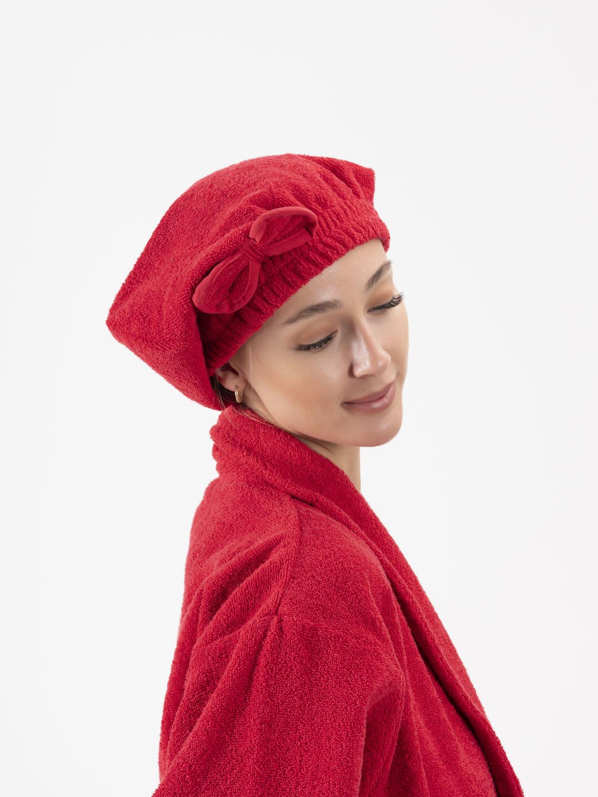 CottonVerse Saç Kurulama Bonesi – %100 Pamuk , Fiyonklu Kırmızı