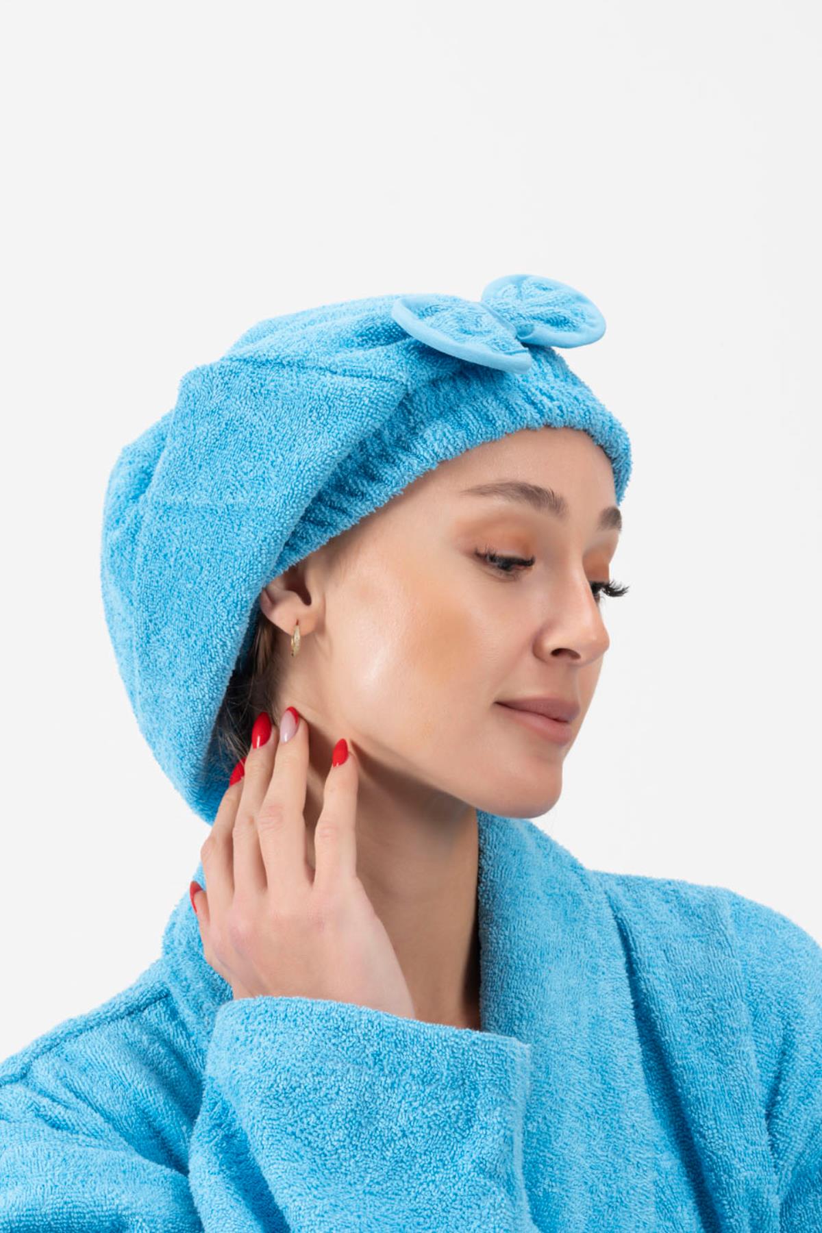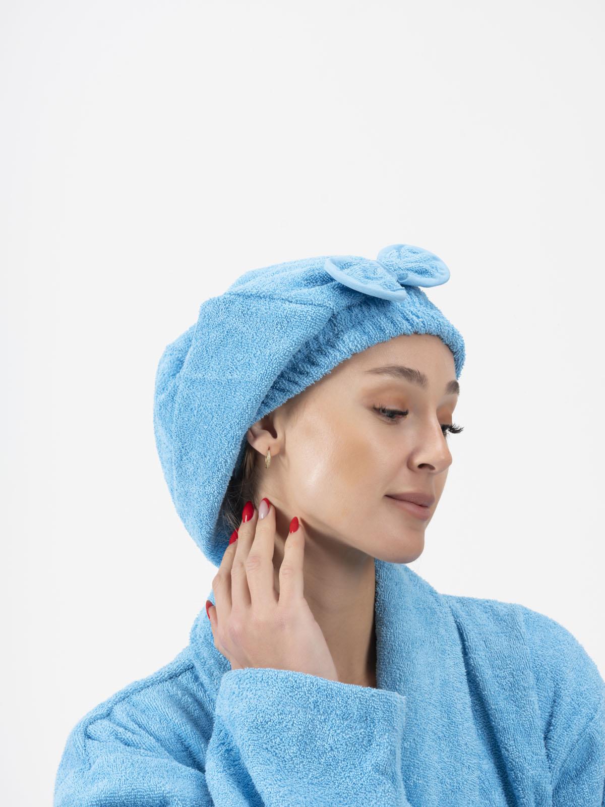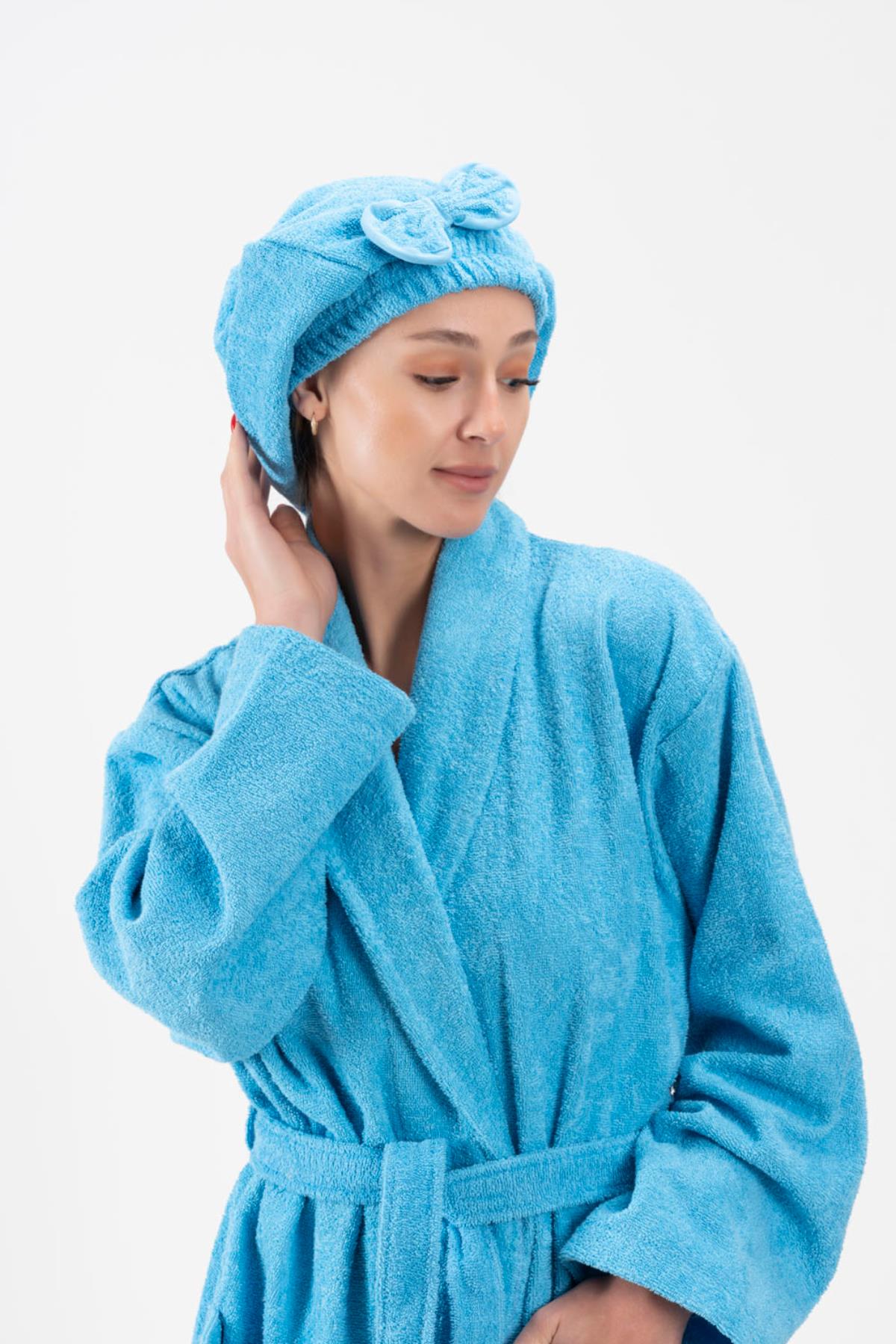 CottonVerse Saç Kurulama Bonesi – %100 Pamuk , Fiyonklu Mavi