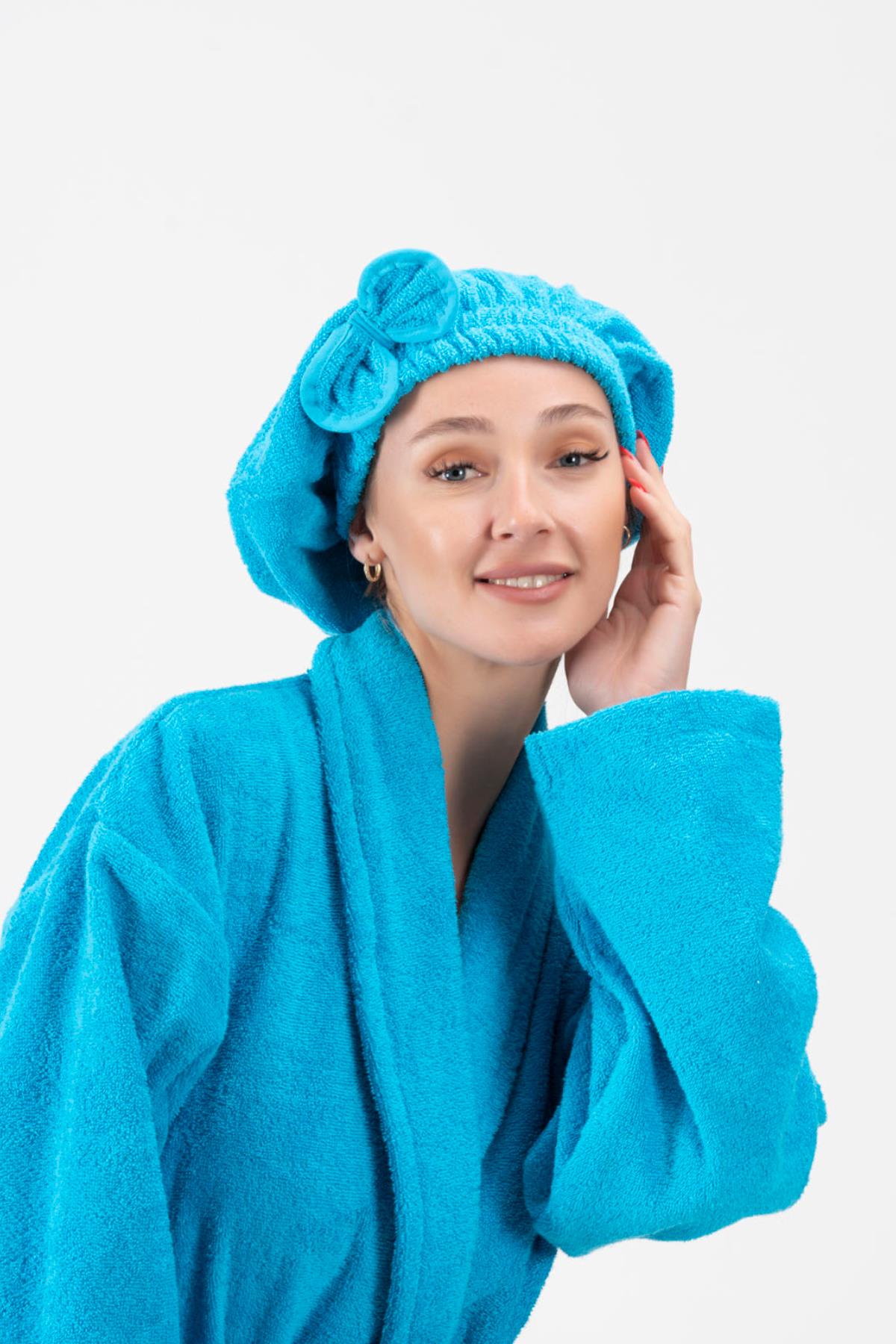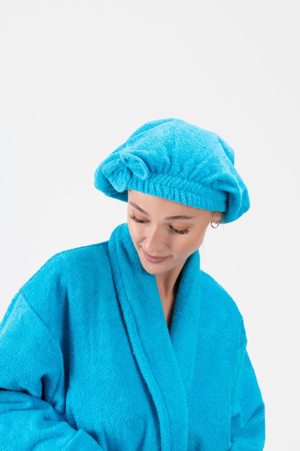 CottonVerse Saç Kurulama Bonesi – %100 Pamuk , Fiyonklu Turkuaz