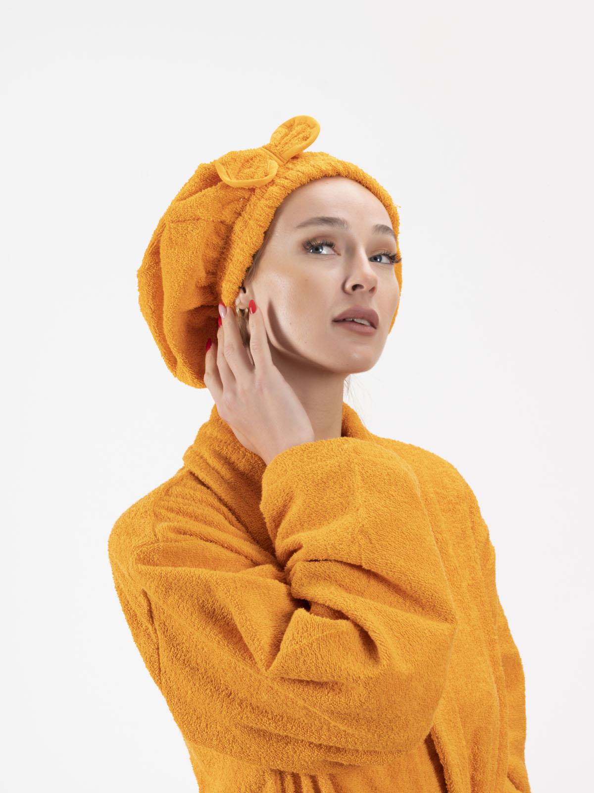 CottonVerse Saç Kurulama Bonesi – %100 Pamuk , Fiyonklu Turuncu