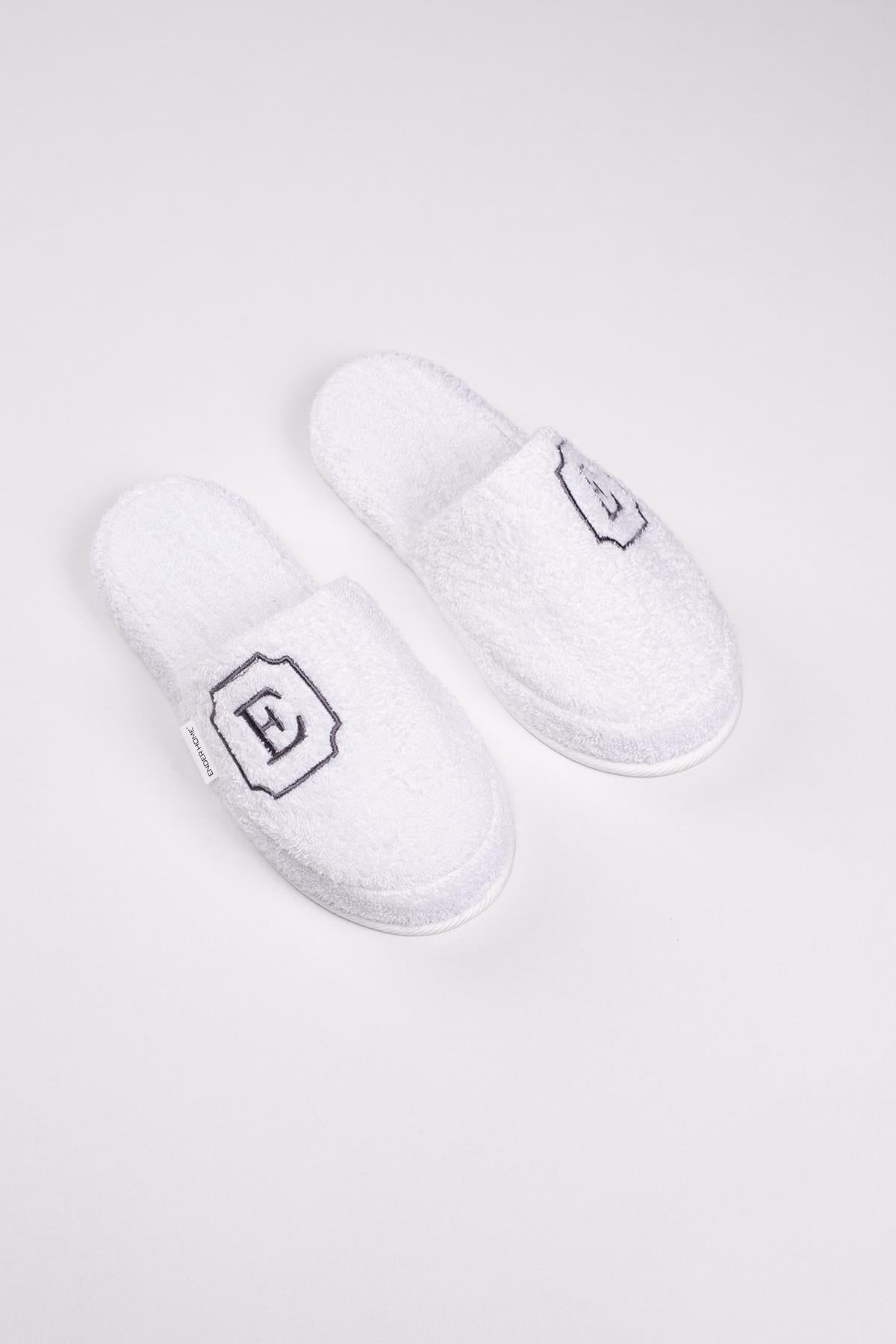 E Harf Nakışlı Banyo Ve Ev Havlu Terliği – %100 Pamuk Kaymaz Kalın Taban