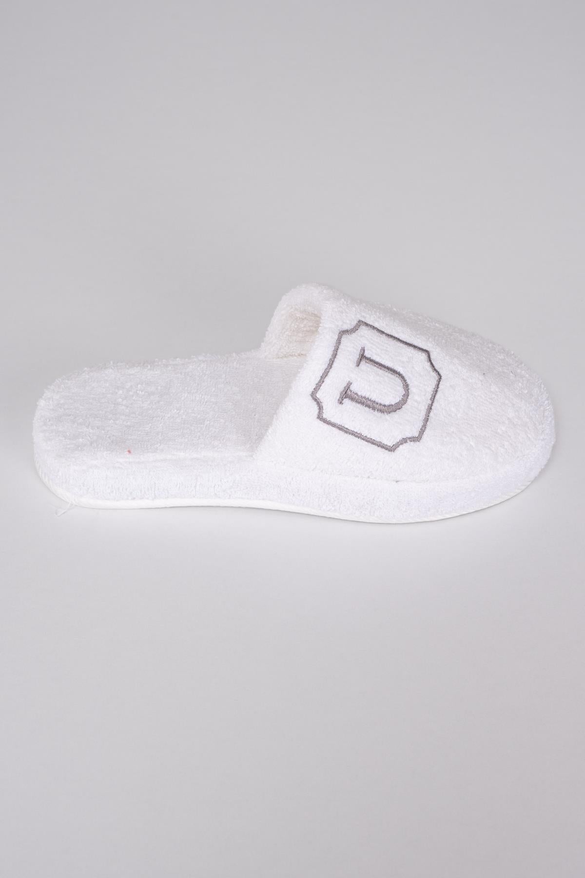 U Harf Nakışlı Banyo Ve Ev Havlu Terliği – %100 Pamuk Kaymaz Kalın Taban