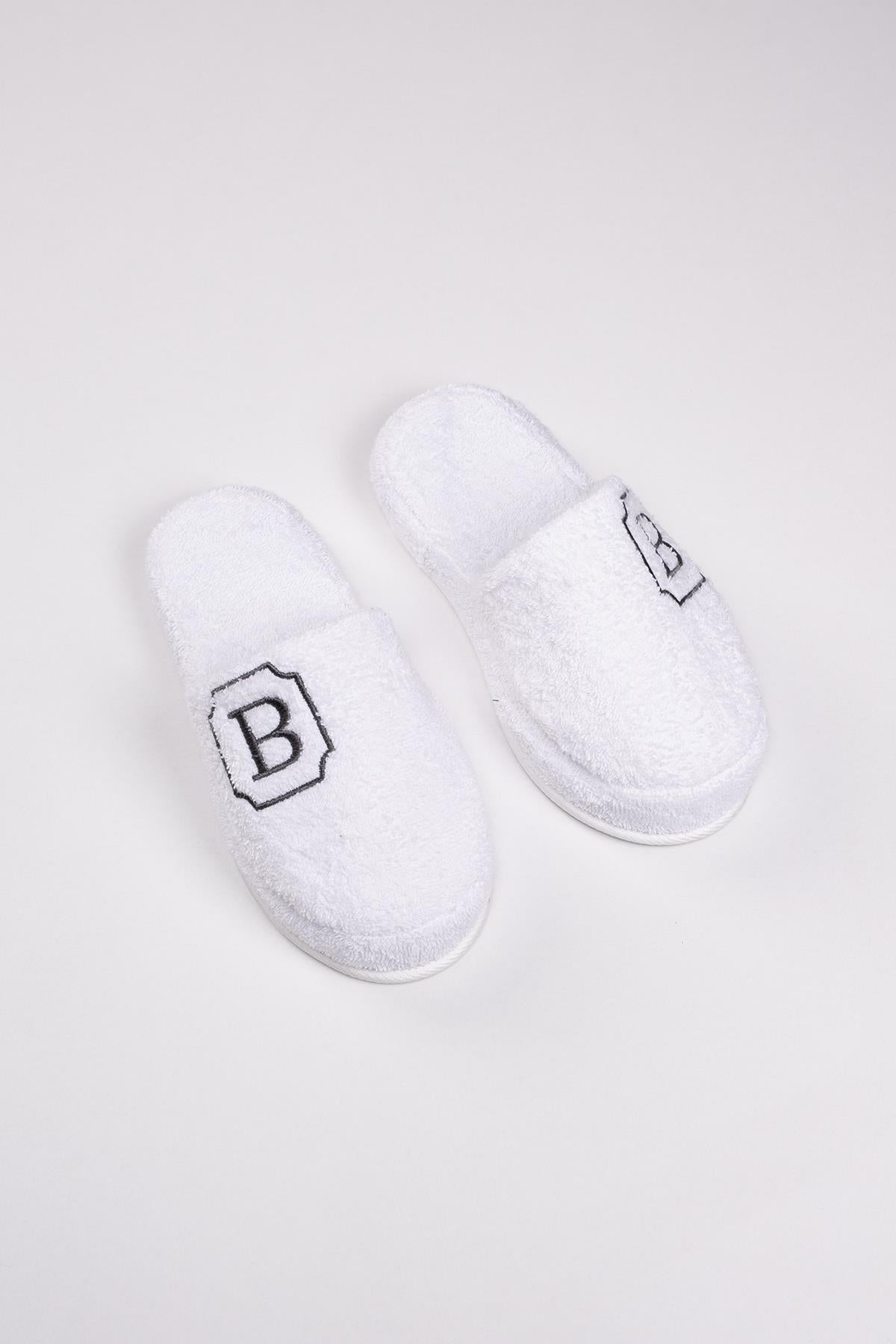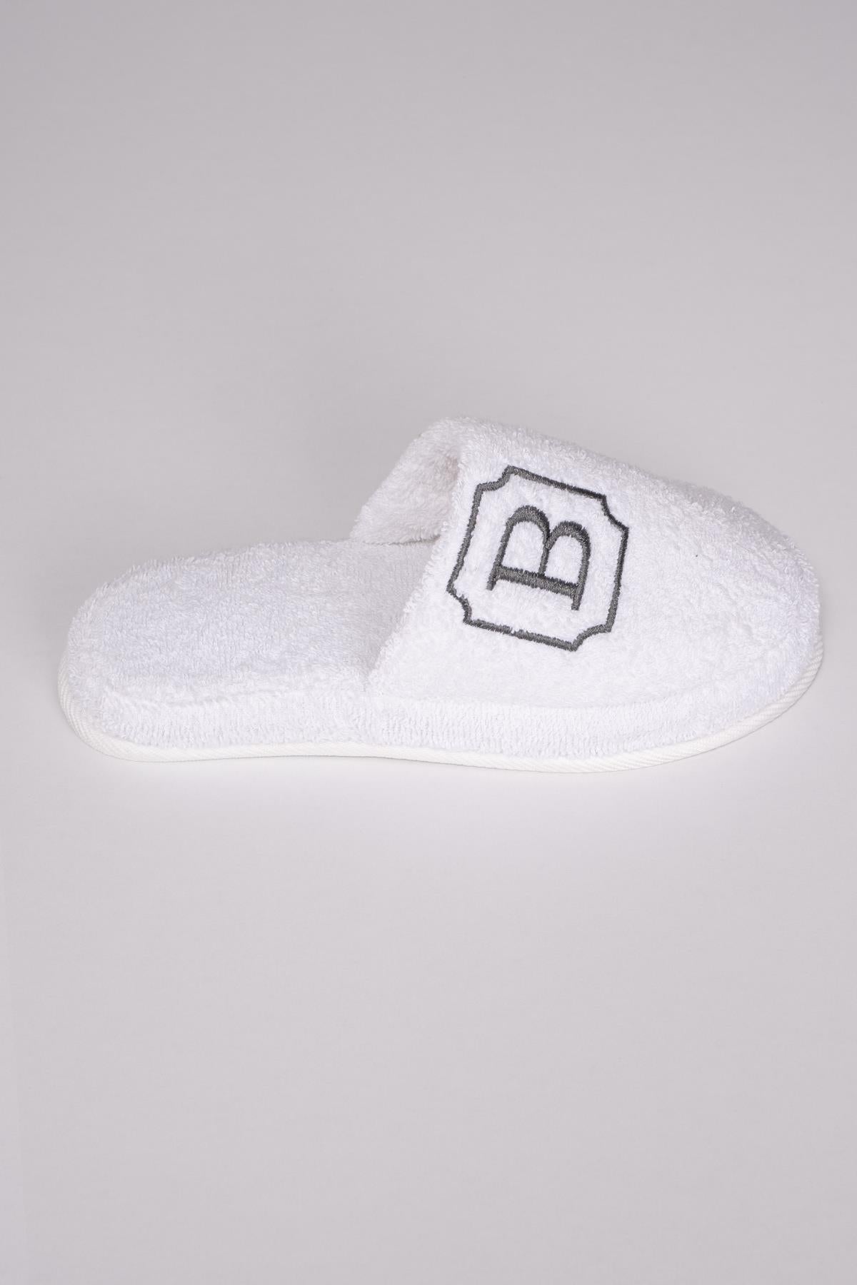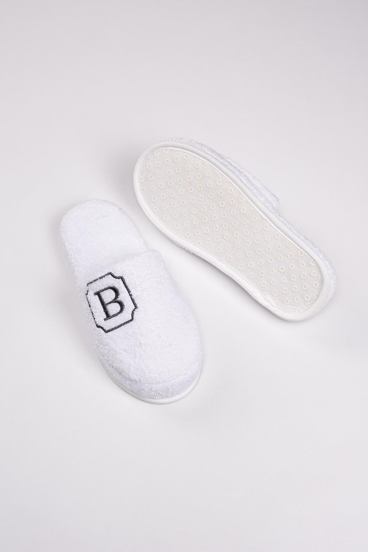 B Harf Nakışlı Banyo Ve Ev Havlu Terliği – %100 Pamuk Kaymaz Kalın Taban